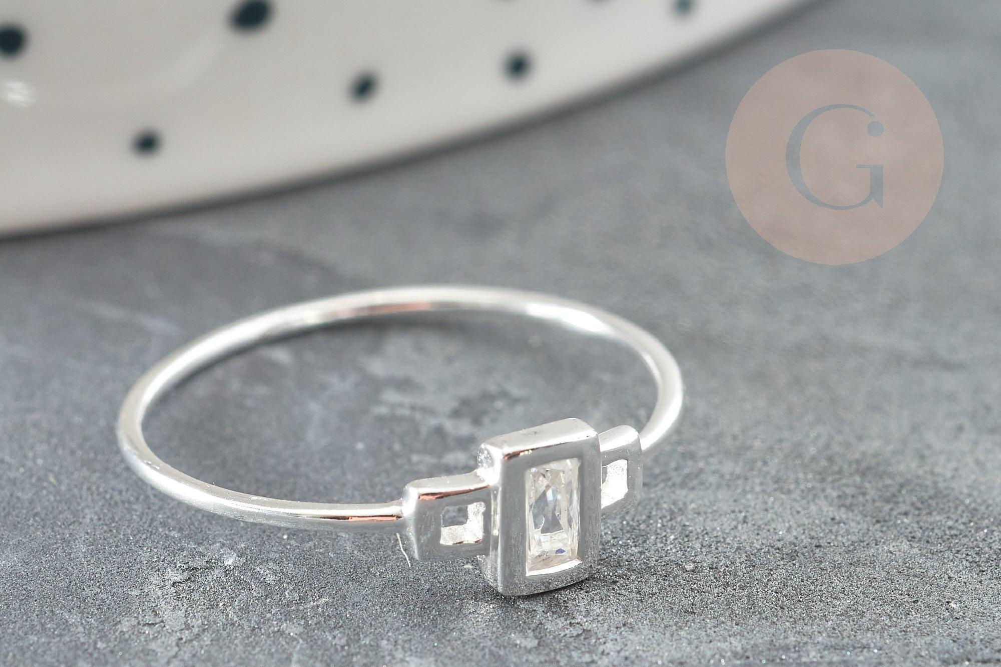 Add a touch of understated elegance to your look with our slim ring featuring a rectangular crystal, crafted from solid 925 silver.