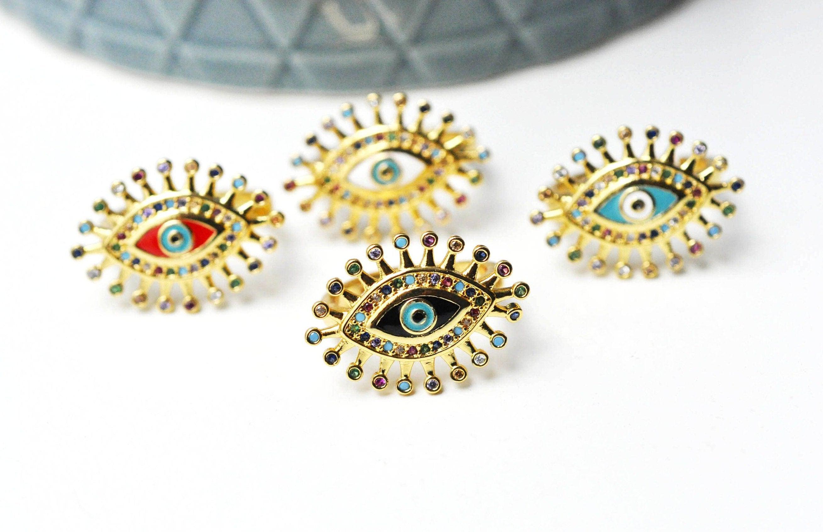 Adjustable ring in gold-plated brass with protective eye enamel, jewelry creation, women's ring, birthday gift, 17mm, unit A very beautiful ring holder in enameled gold-plated brass, decorated with a protective eye decorated with zircons around the edge. We love this...