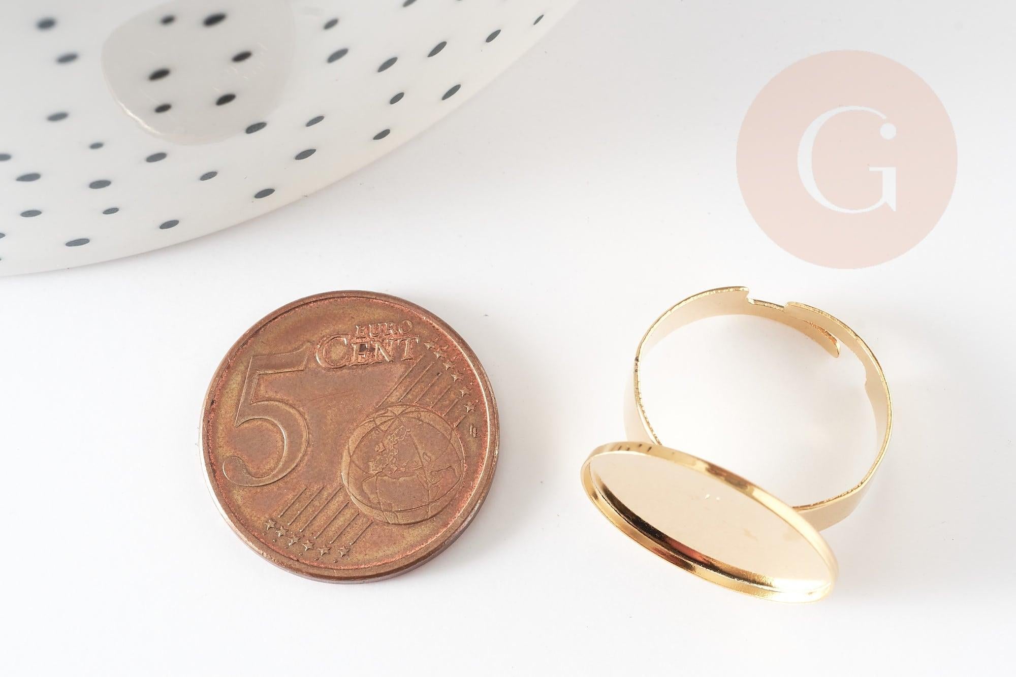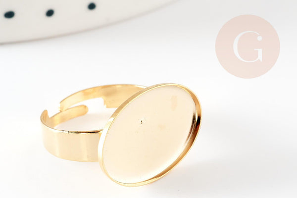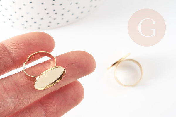 Adjustable ring for cabochon 18.5x13.5mm in stainless gold steel, a customizable ring support for jewelry creation, 17mm, both