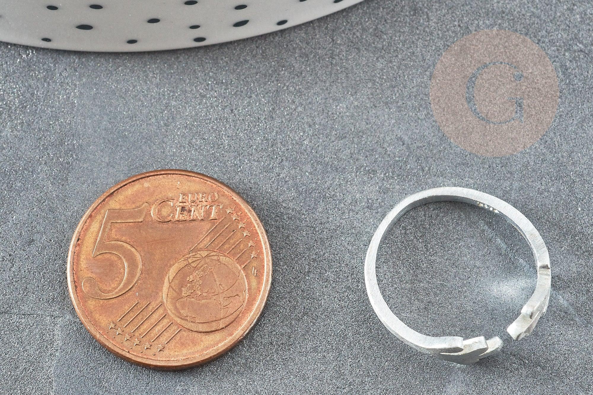 Bague réglable feuille argent 925 massif brossé 19mm, x1 (G9140)