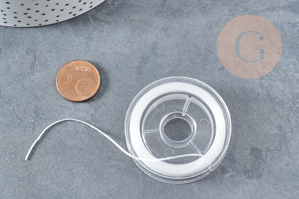 Bobine de 10 mètres de fil élastique nylon blanc 0.8mm, x1 (G8914)