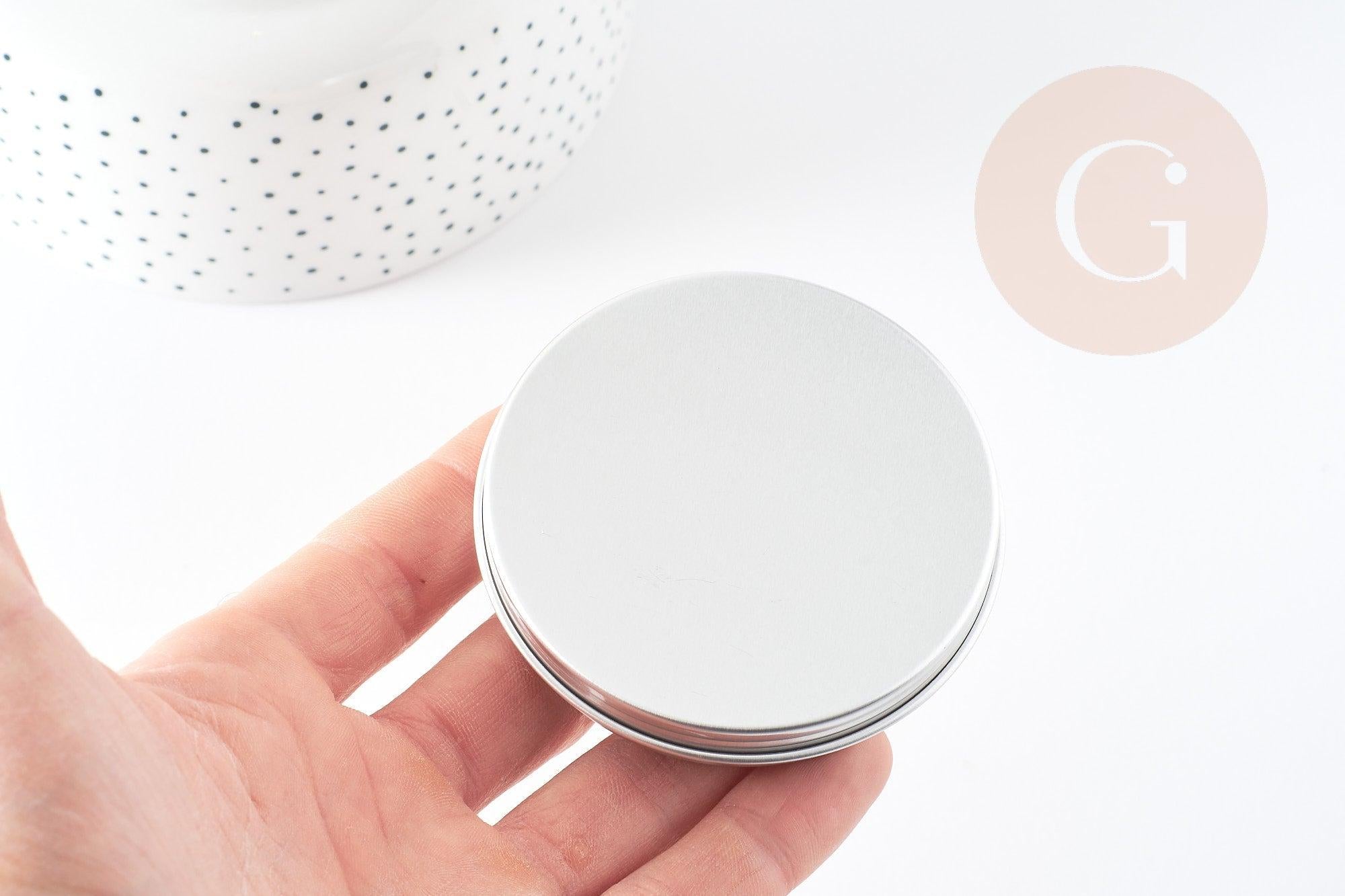 Fall for this elegant round platinum aluminum box , a must-have for all your creative activities. With its secure screw lid , it is ideal for keeping your beads, jewelry, homemade cosmetics, candles or small DIY accessories protected from dust.