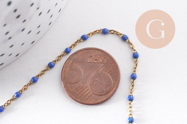 Bracelet acier 304 inoxydable doré 14k résine bleu marine 1.5mm-20.5cm, x1 (G10209)