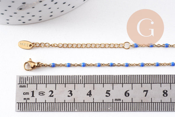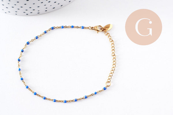 Add a bright and elegant touch to your creations with this 14K gold-plated stainless steel bracelet , made of a fine chain adorned with white resin . Ready to use, this bracelet is an excellent base for your DIY jewelry, to personalize according to your desires.