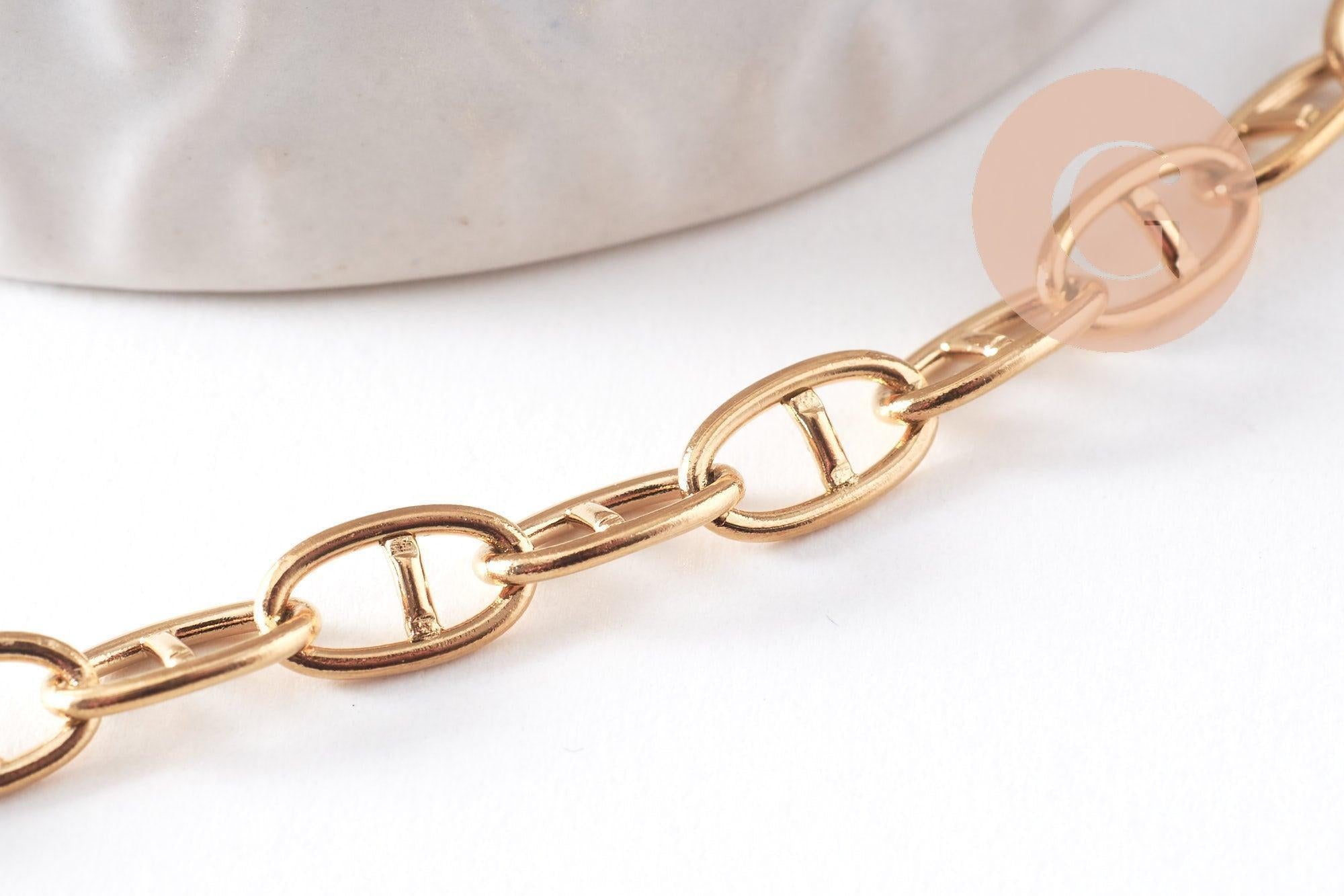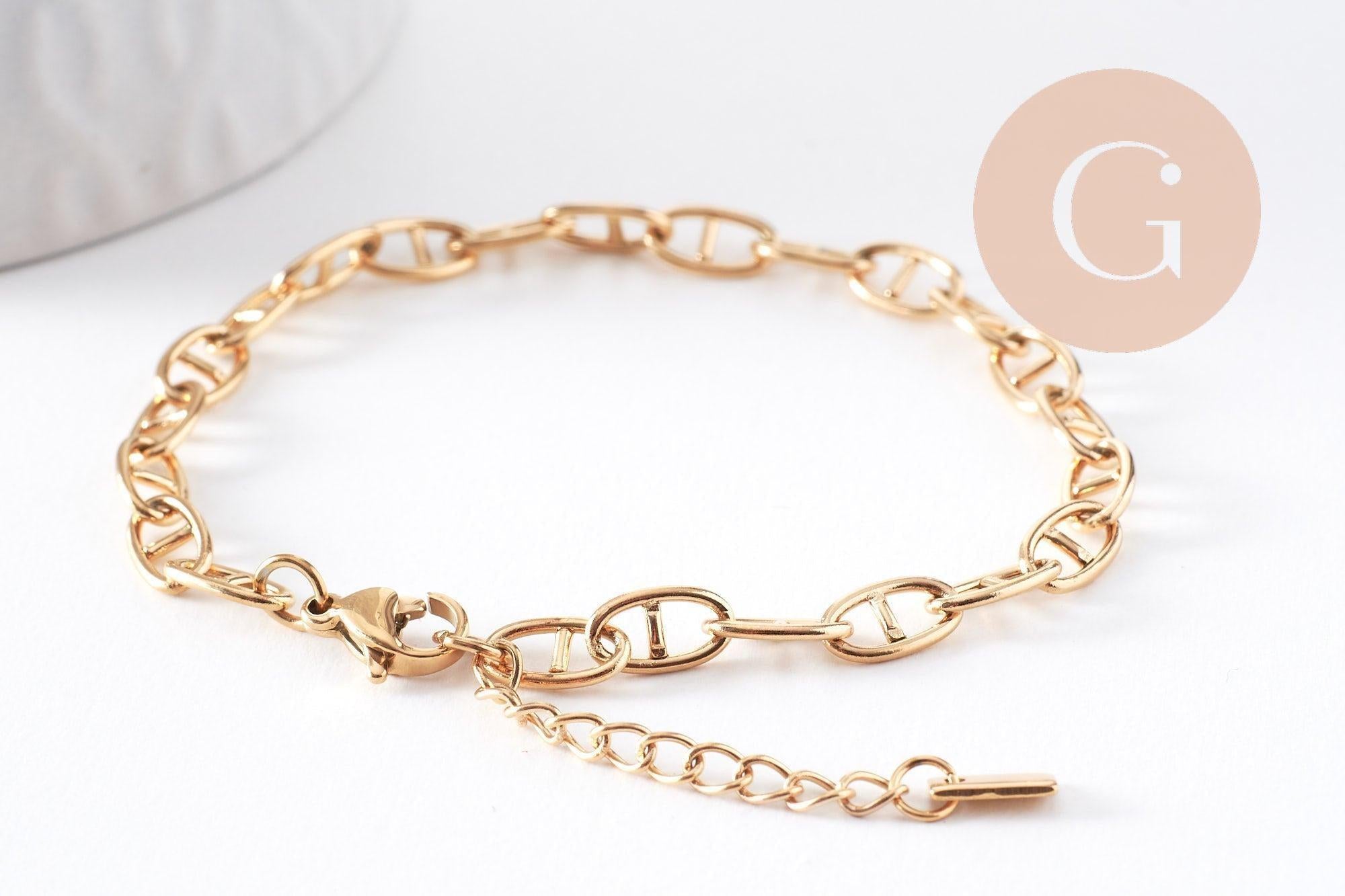 Bracelet chaine maille marine acier 304 inoxydable doré IP 14k 16.7cm, x1 (G10348)