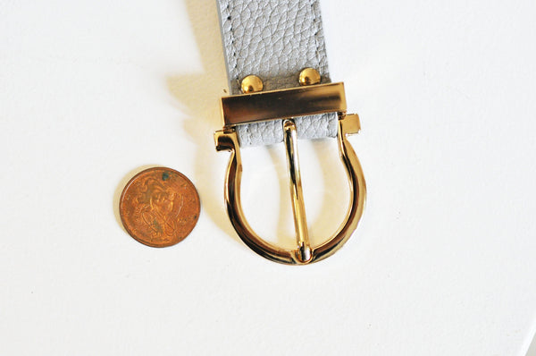Adjustable gray leather strap with gold buckle, 25.5mm, x1 (G2492)