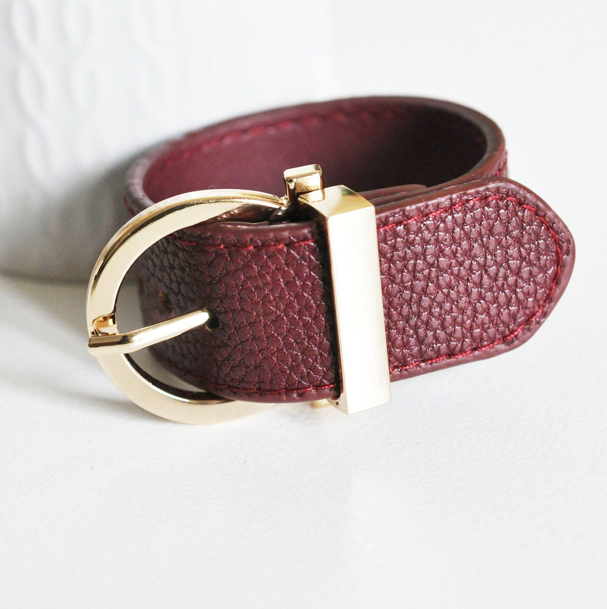 Burgundy red leather bracelet adjustable golden buckle, natural leather, women's bracelet, leather bracelet, golden bracelet, 25.5mm