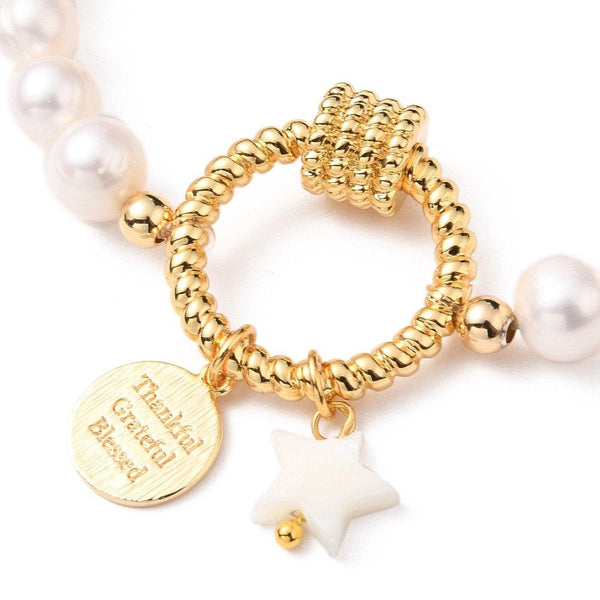Elastic bracelet Natural pearls gold-plated brass gold-plated jewelry, birthday gift, nickel-free, charm bracelet, 50mm A very pretty bracelet in gilded brass and natural freshwater pearls, elasticated, decorated with a twisted circle in gilded brass and a star tassel in natural...