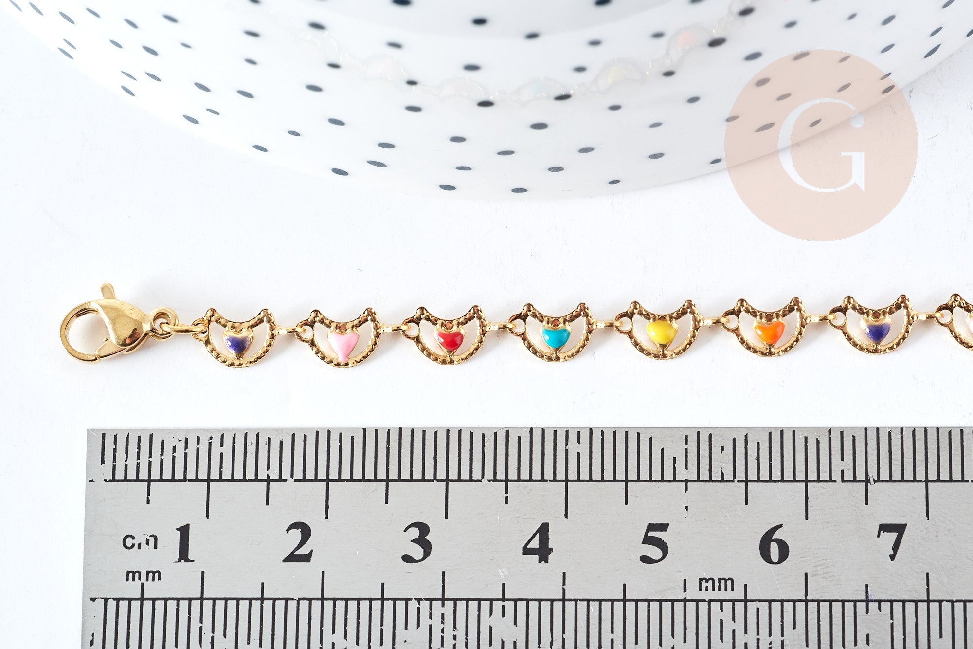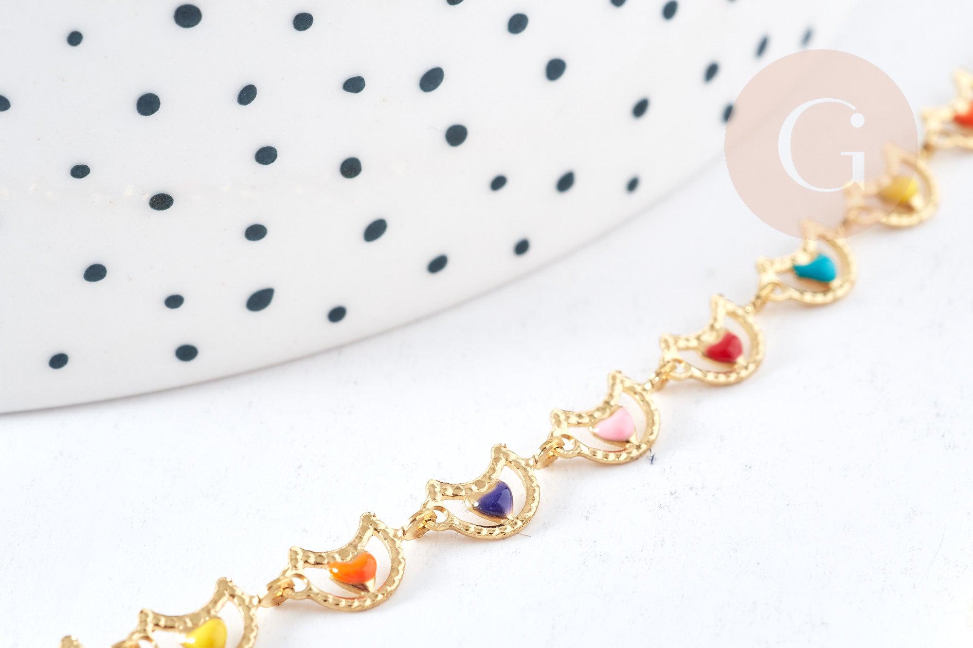 Bracelet lunes acier doré 304 inoxydable émaillé multicolore 25mm, idée cadeau anniversaire fête des mères femme, x1 G8800