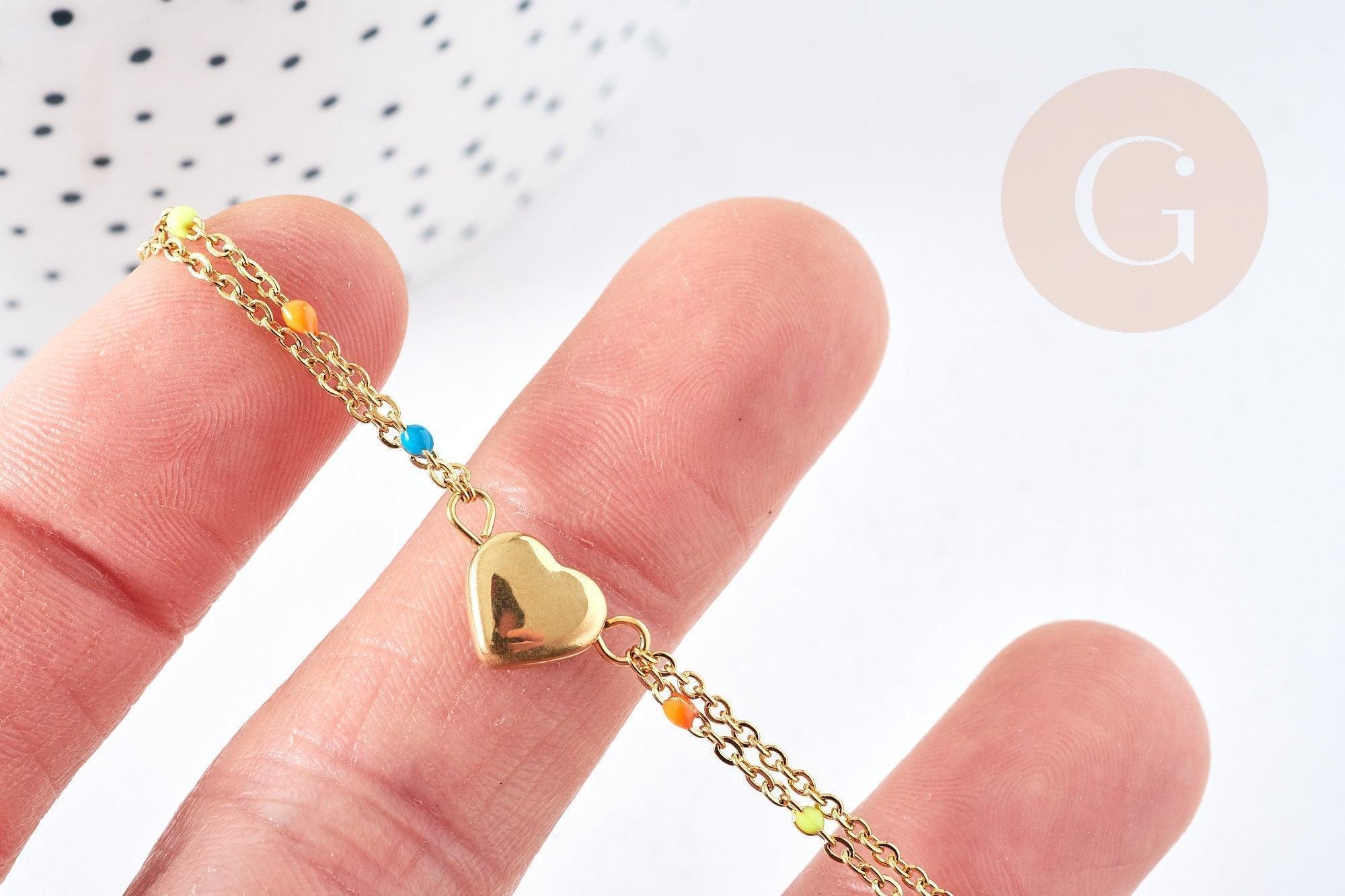 This 304 gold stainless steel multi-chain bracelet is an elegant and colorful piece of jewelry that will suit any style. The different chains add a touch of fun and fantasy to the whole and are connected to a heart pendant