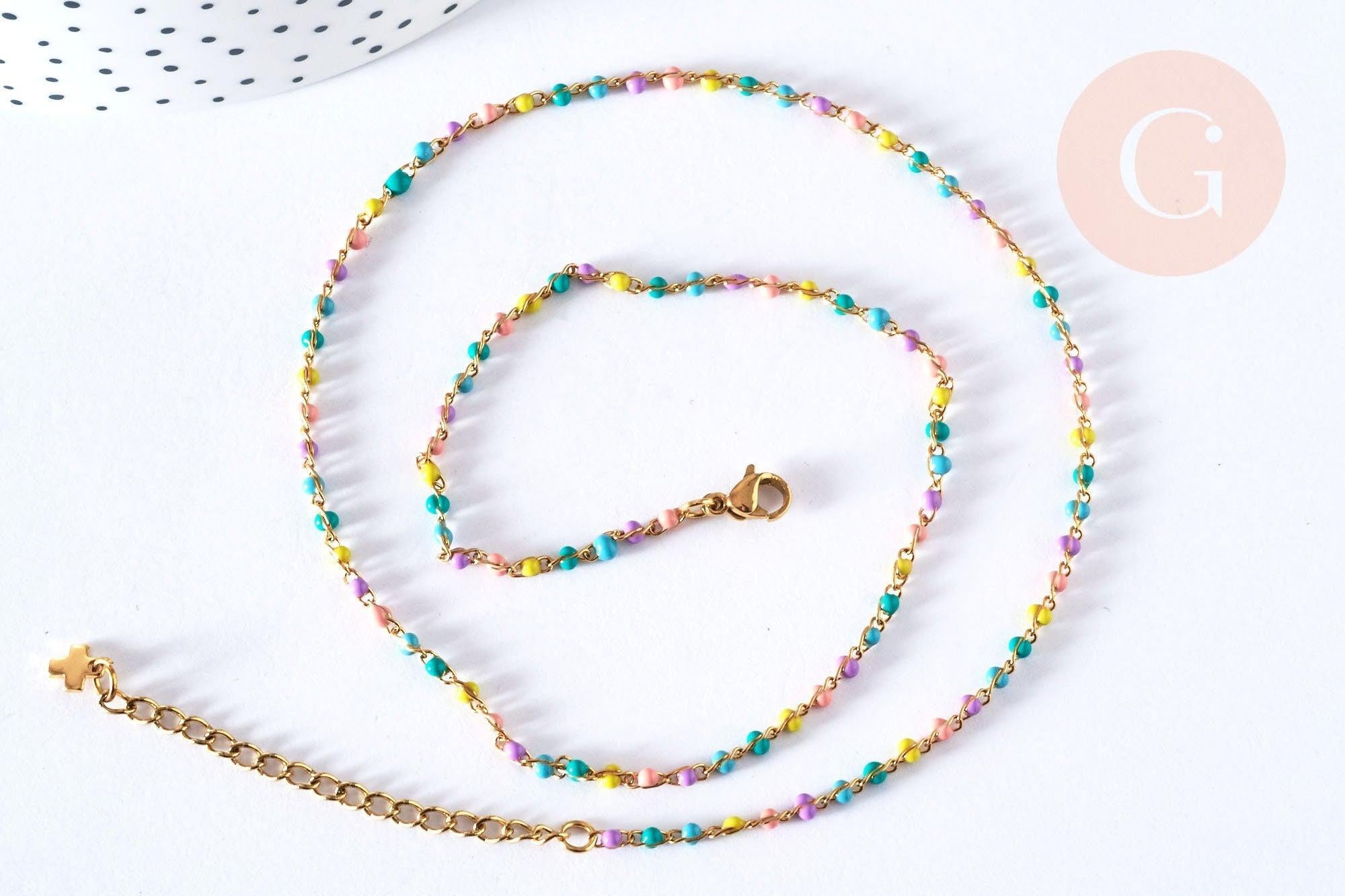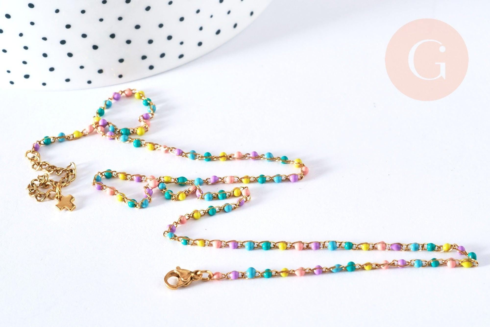 To quickly make your jewelry, Gingerily offers you a bracelet/chain in fine steel chain gilded with 14 carat gold with multi-colored resin beads.