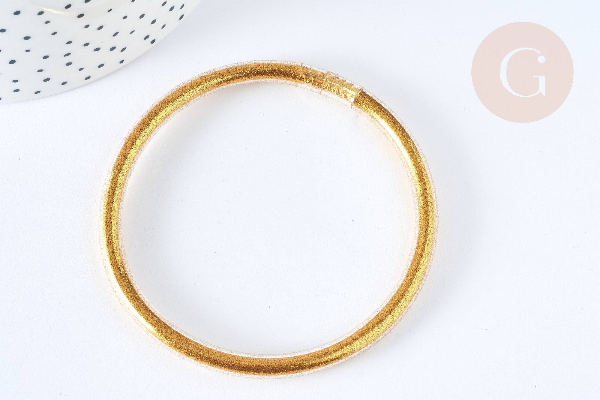 Bracelet plastique PVC paillettes doré 6.3cm, x1 (G7229)