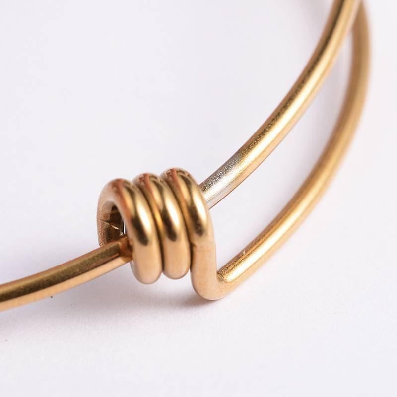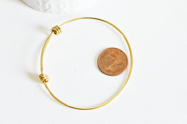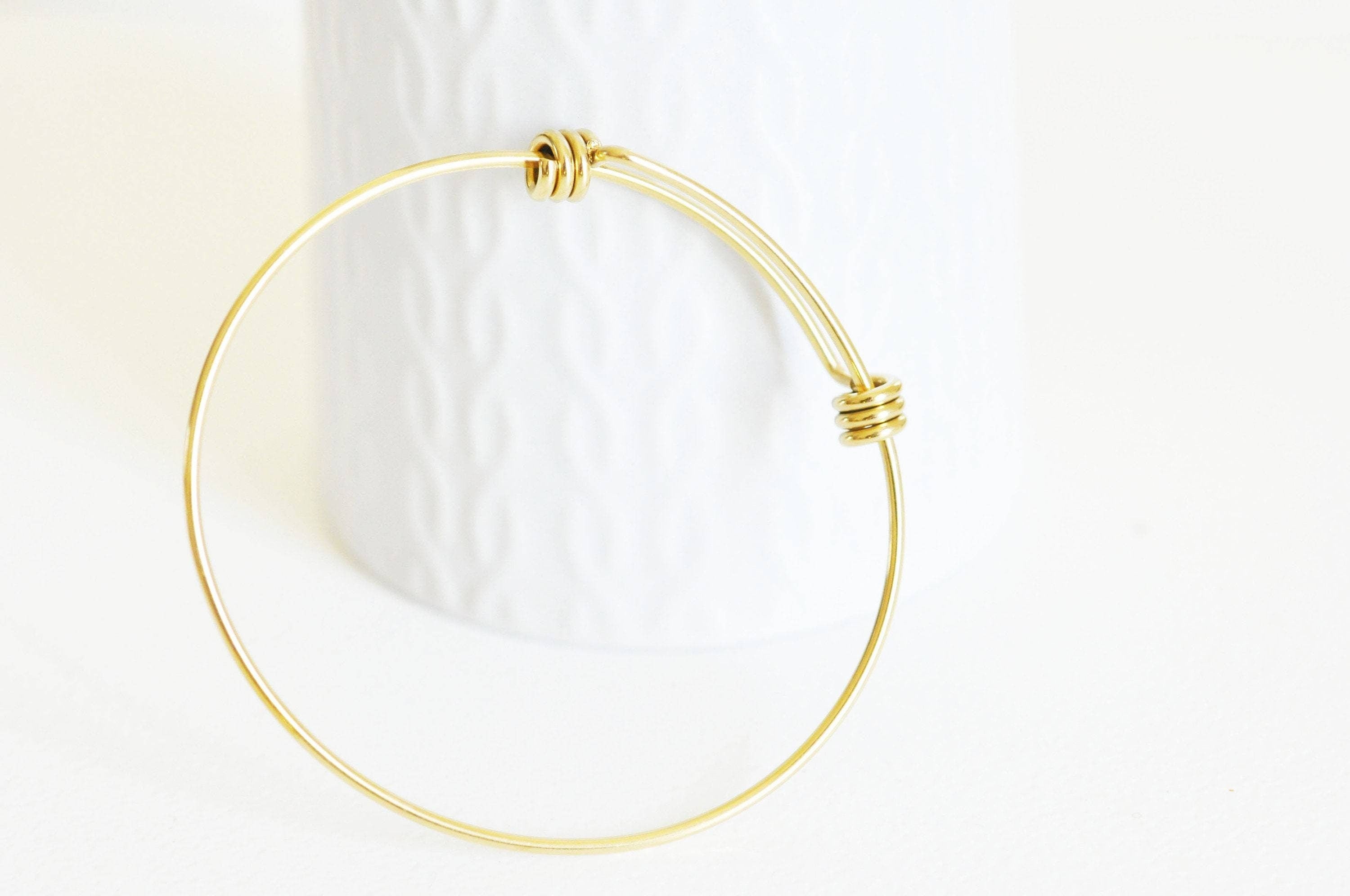 This adjustable gold-tone stainless steel bangle bracelet is the perfect accessory for modern and elegant jewelry creations. With its sleek design and durable material, it easily adjusts to your wrist size, offering both comfort and style.