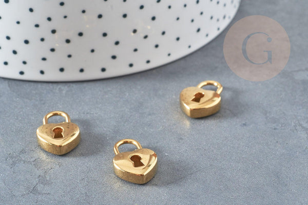 Adopt this gold stainless steel charm representing a heart-shaped padlock. Ideal for making many creations of costume jewelry .