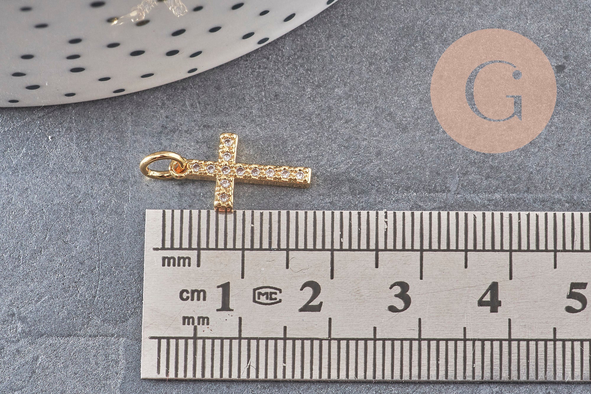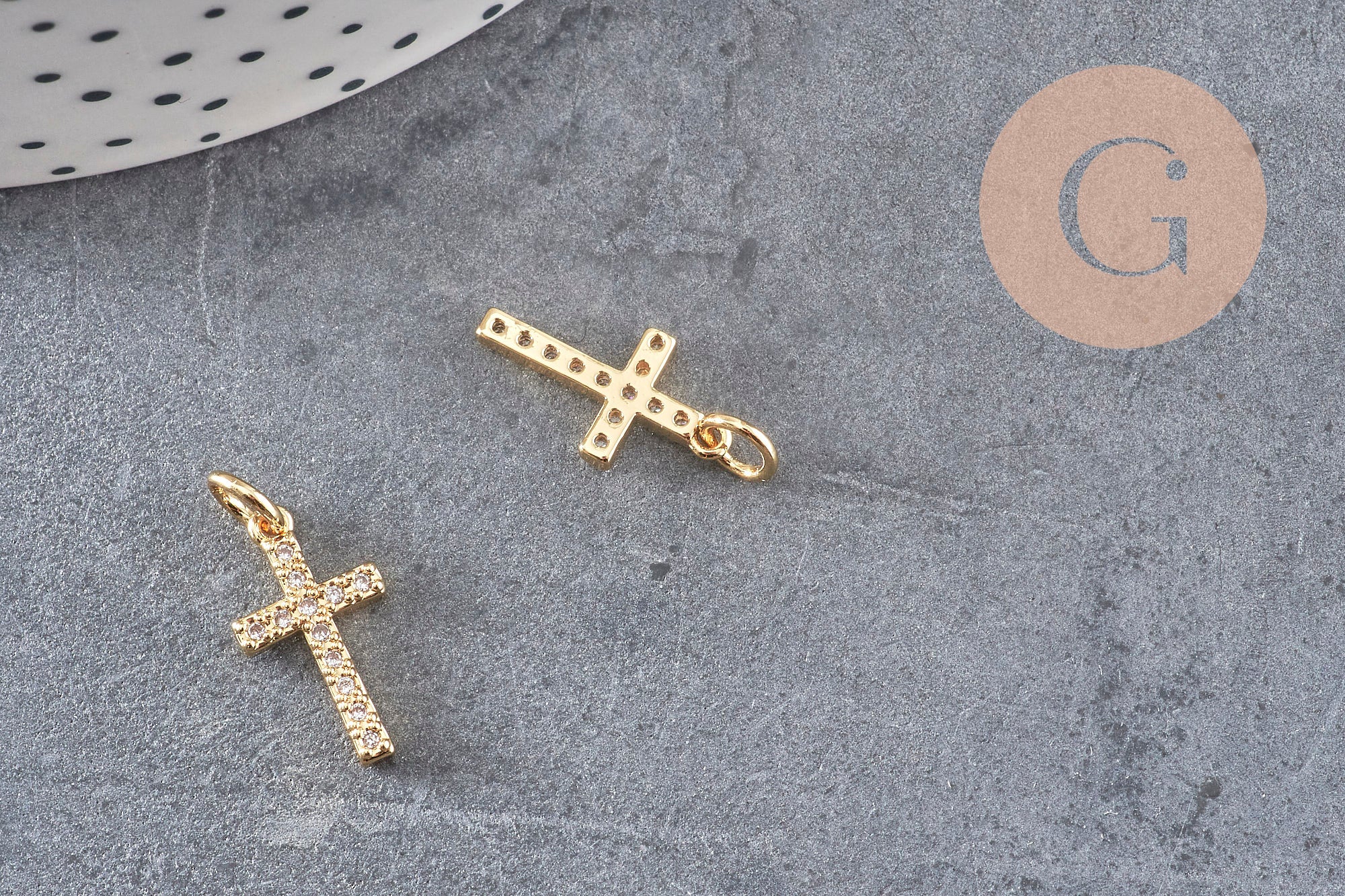 CriStal 18k gold-plated brass cross charm, nickel-free, raw brass, jewelry cross, jewelry creation, religion pendant, zircon pendant, 16mm-G473