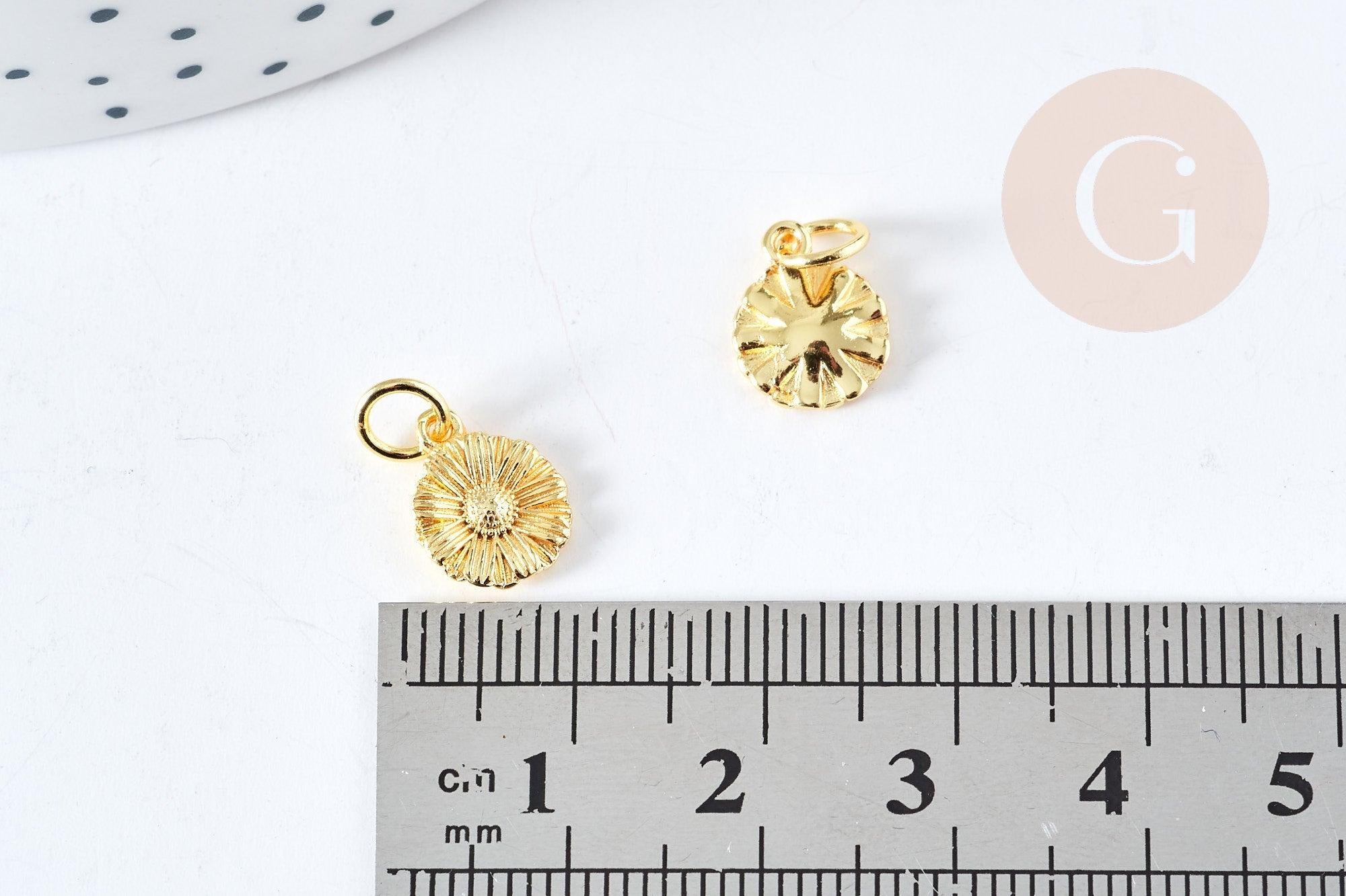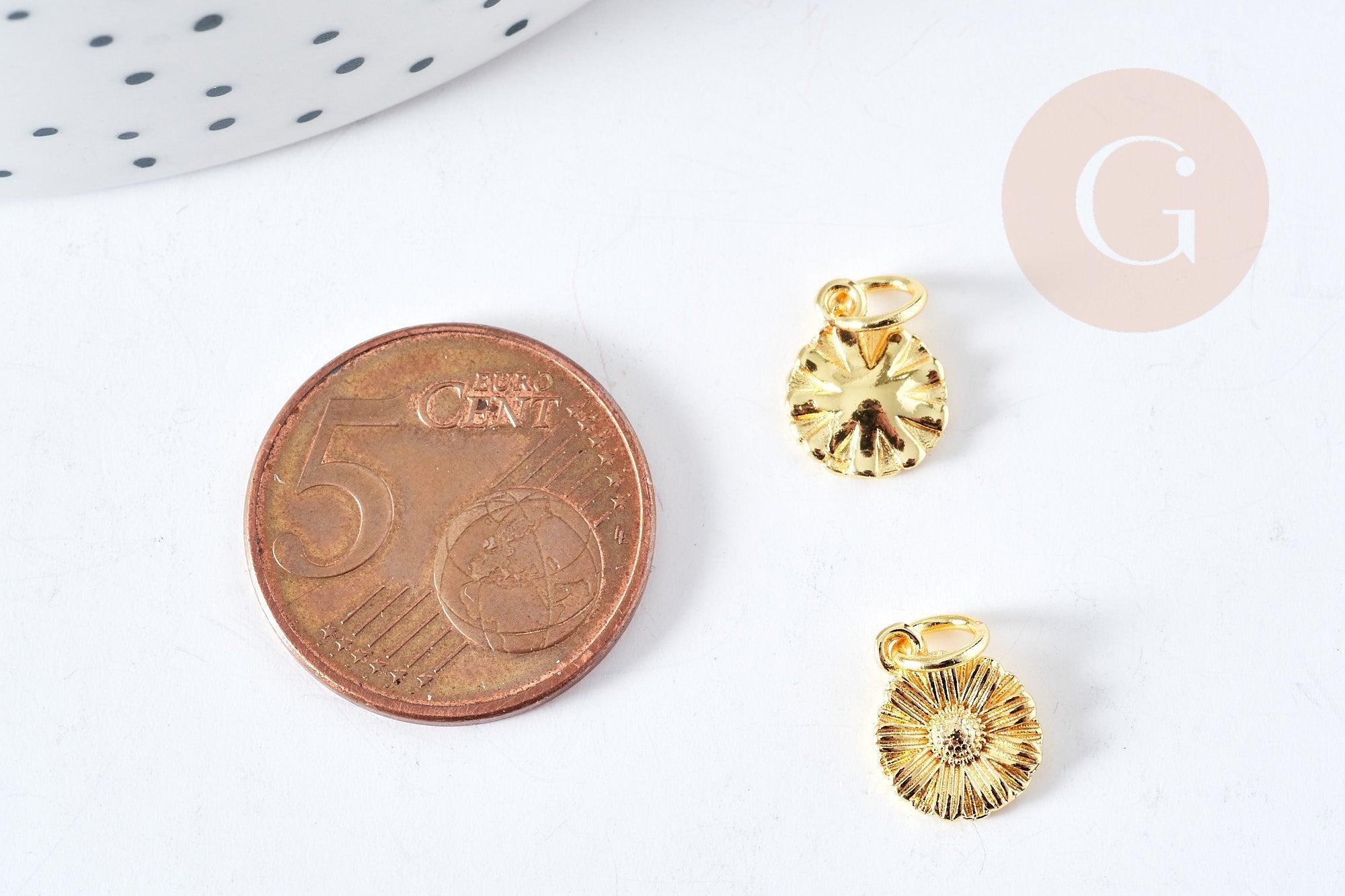 Breloque fleur tournesol laiton doré 18k 11mm, x1 (G8742)