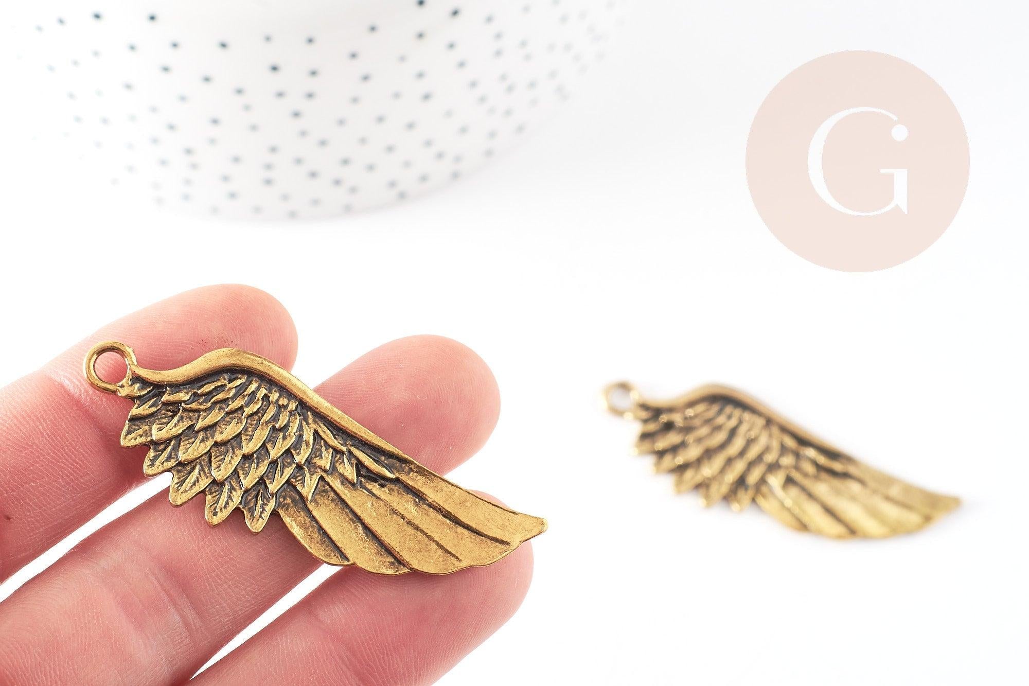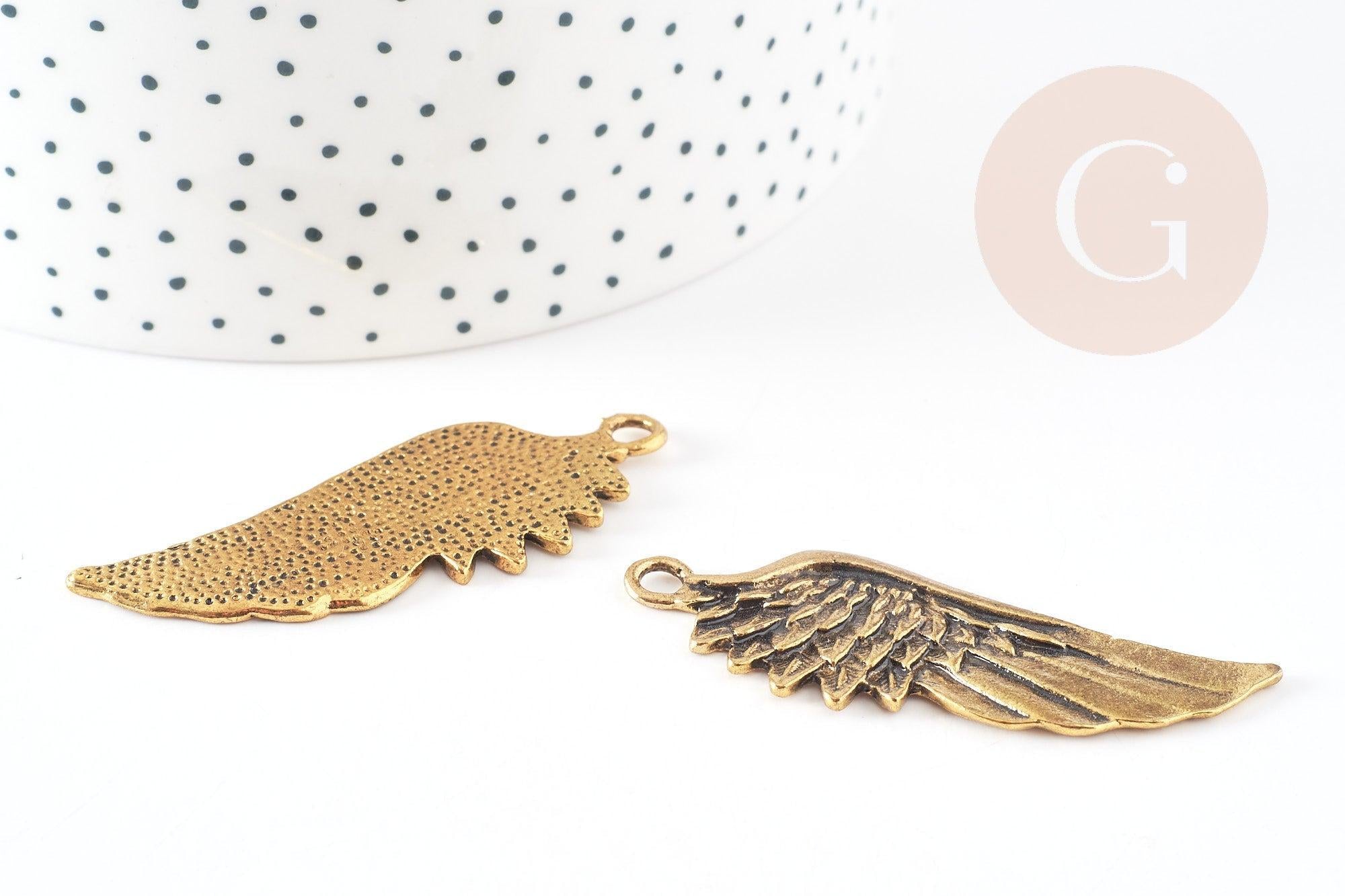 Breloque grande aile zamac doré 56mm,pendentif doré création bijoux x1 G2688