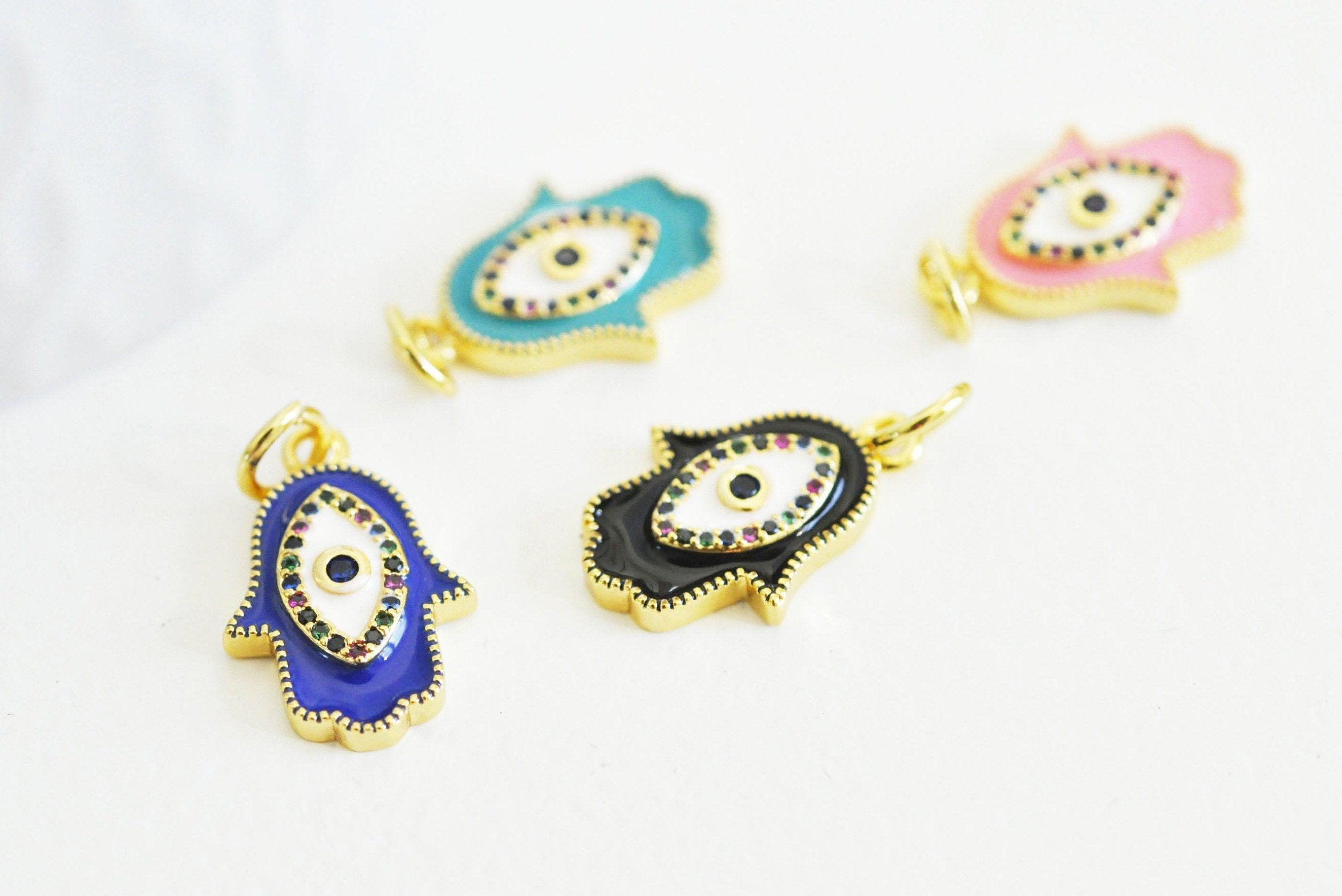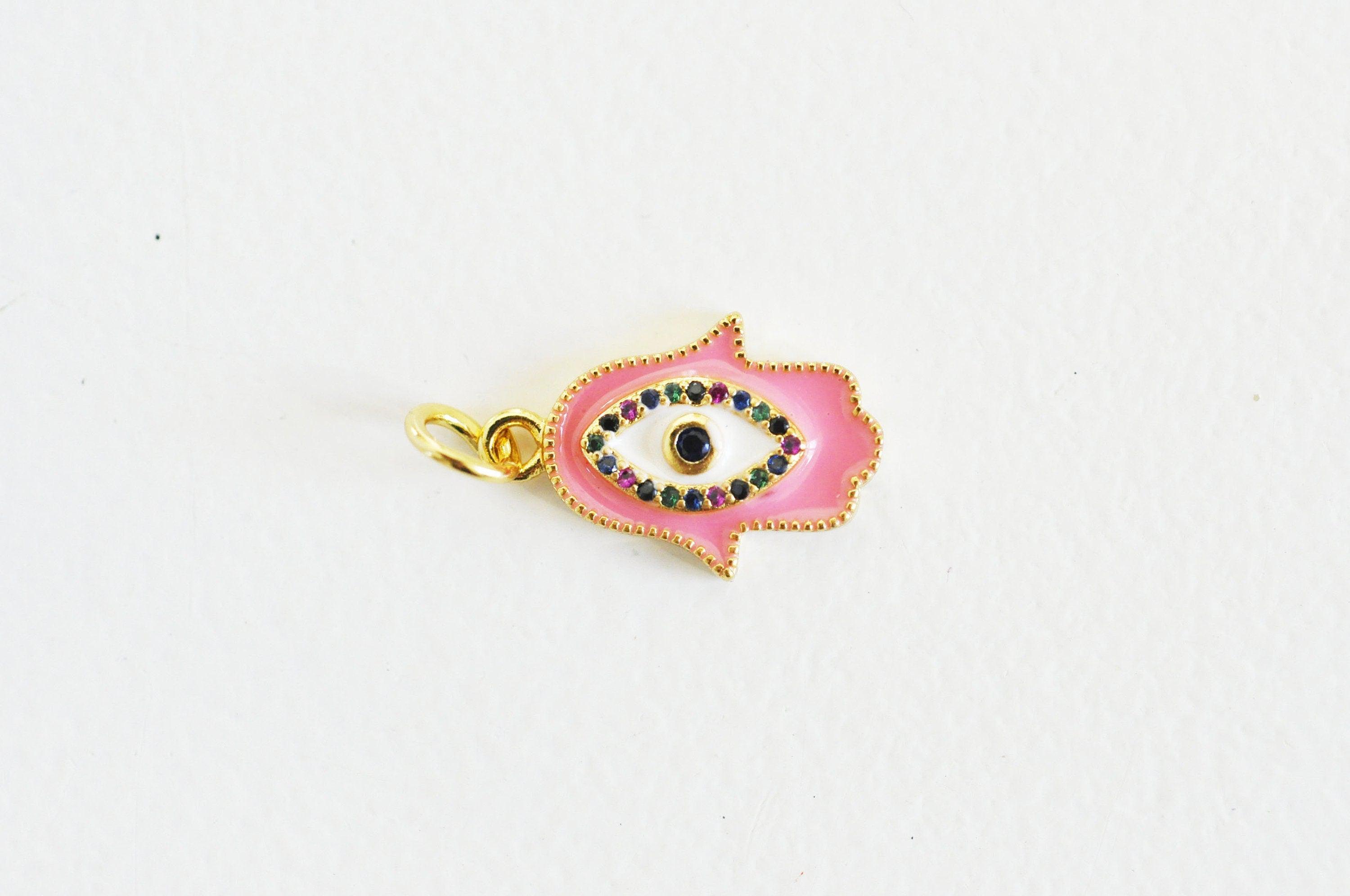 EP Breloque main fatma oeil laiton doré 18k cristal,sans nickel,20mm x1 G4804
