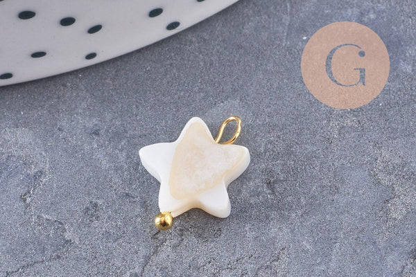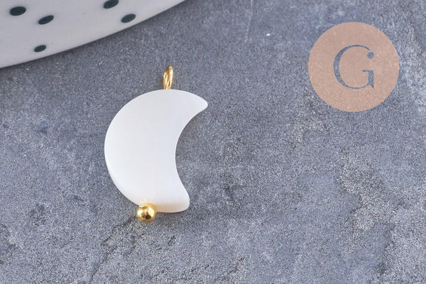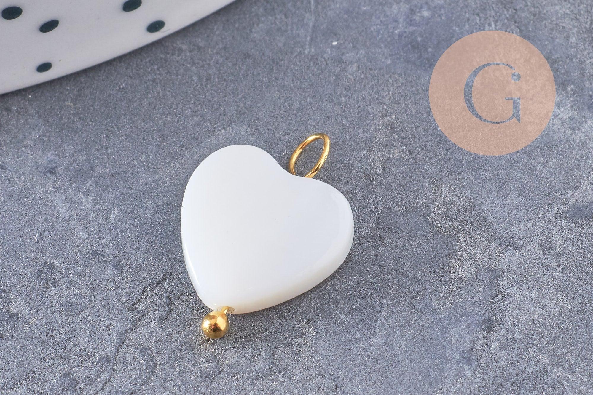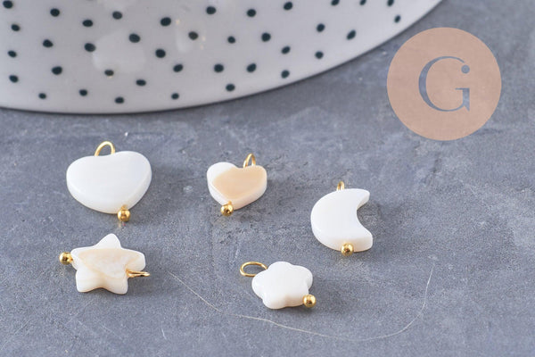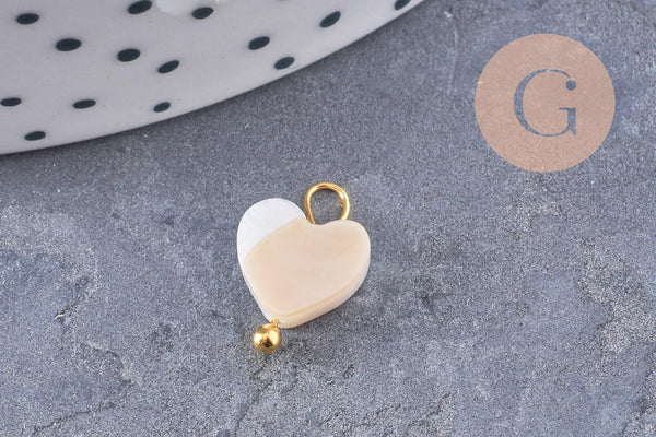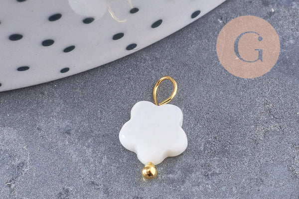 Enhance your creations with this natural white mother-of-pearl charm , mounted on a gold zamac structure.