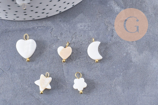 Available in various shapes – heart, star, moon or flower – this delicate charm, measuring between 13 and 16.5 mm , brings an elegant and luminous touch to your DIY jewelry.