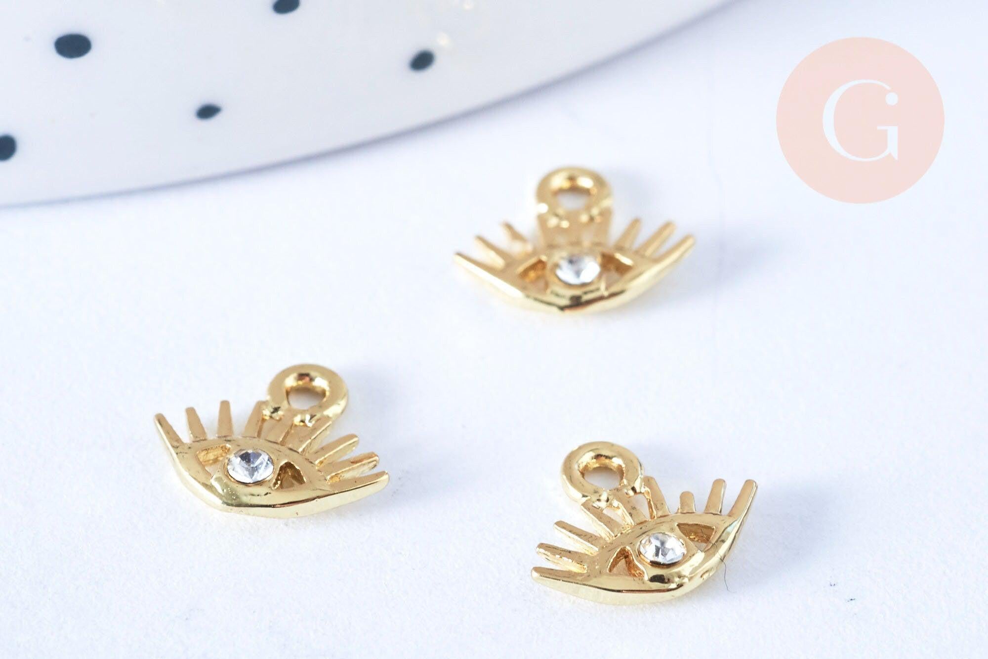 Breloque oeil protecteur zamac doré 18k cristal zircon 10mm, x1 (G5463)