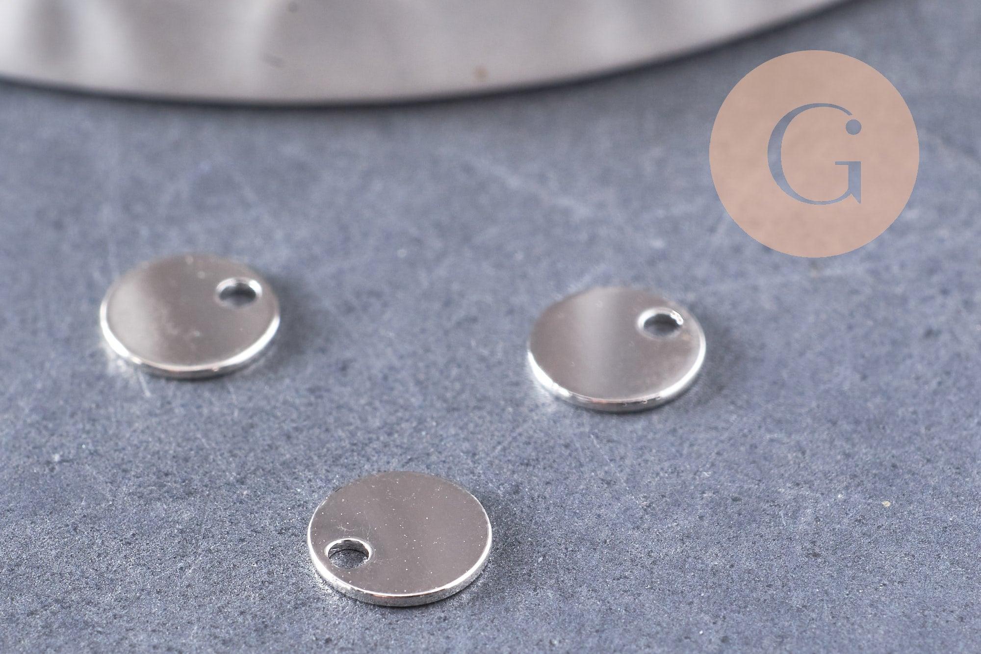 Add a refined touch to your creations with these round charms in white gold plated copper (rhodium) .