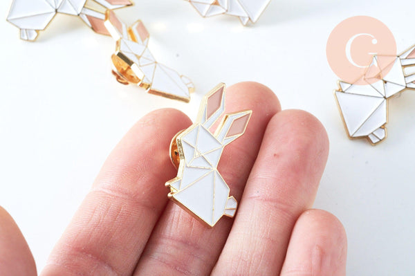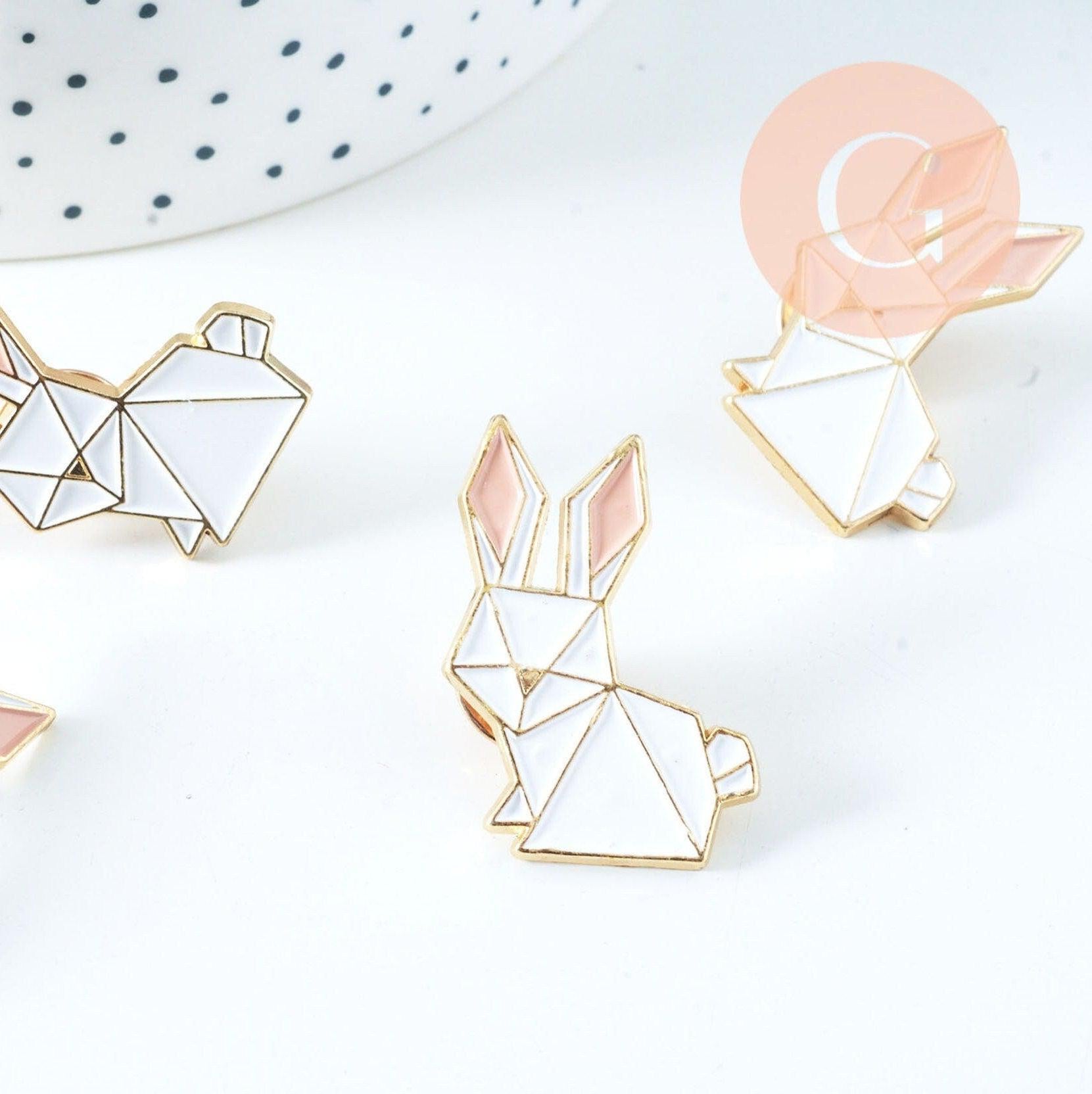 We offer you this delightful brooch / Pin representing a cute origami-style rabbit, in gold zamac and colored enamel.