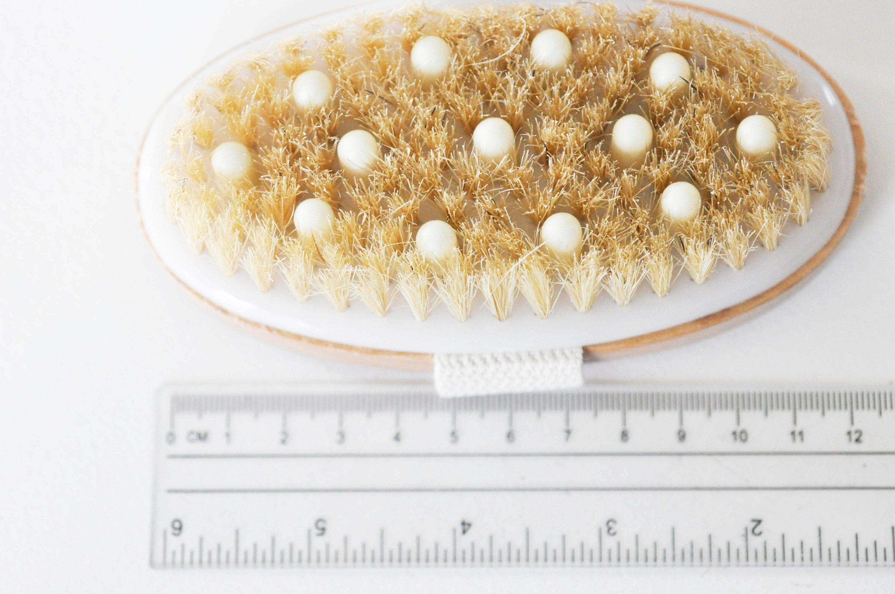 Bamboo & natural bristle massage brush, wooden tool for body massage, anti-cellulite self-massage accessory, 12.8cm, unit A bamboo massage brush, natural bristles with round rubber spikes, which will stimulate the tissues, promote blood circulation and lymphatic drainage. This brush activates...