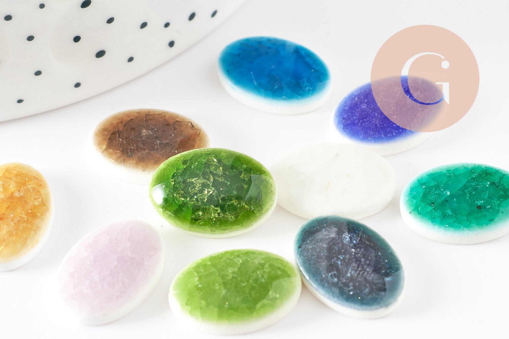 Iridescent porcelain oval dome cabochon, creative supplies, cabochons, porcelain, handmade, 11mmx9mm, X10