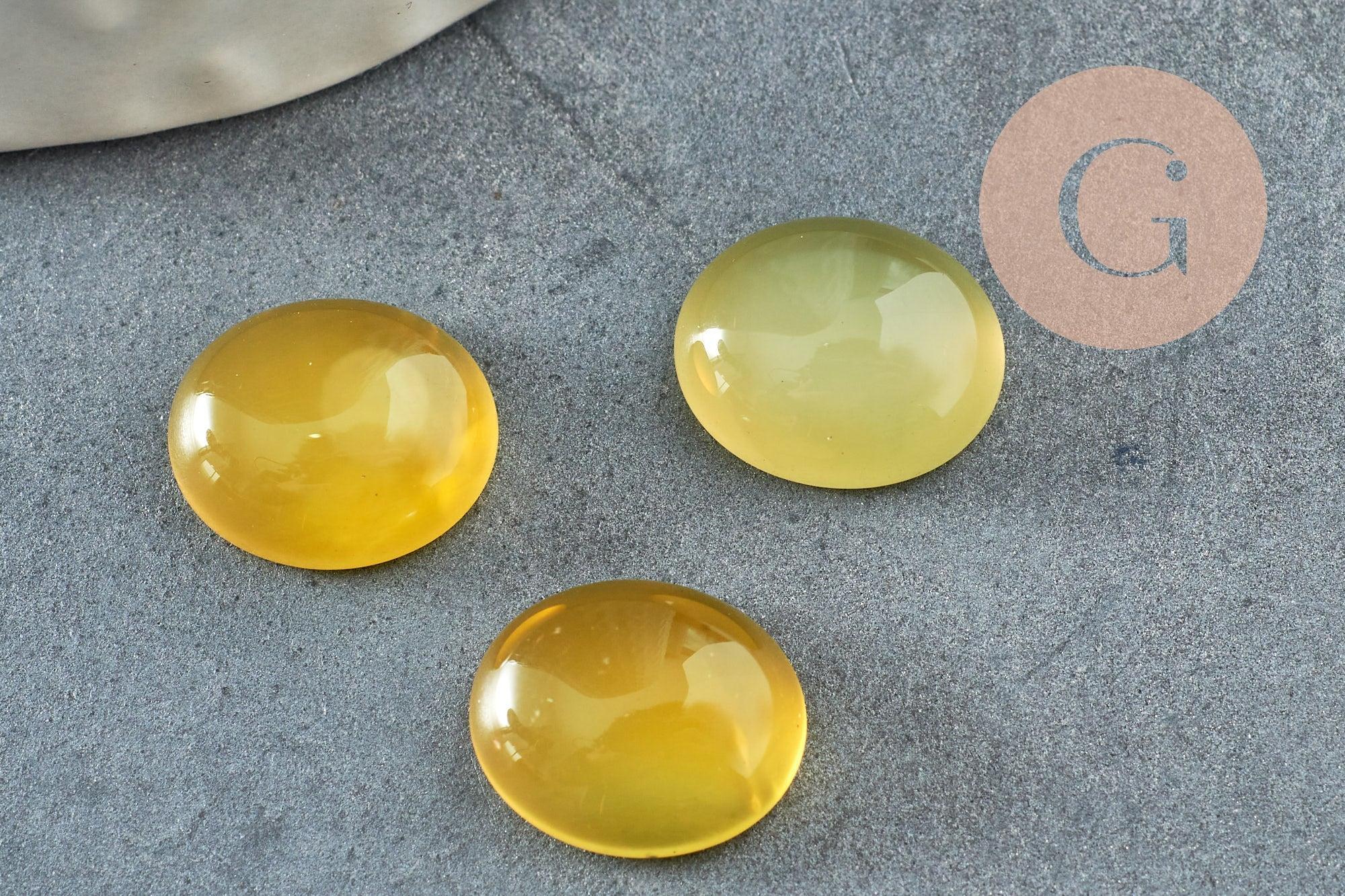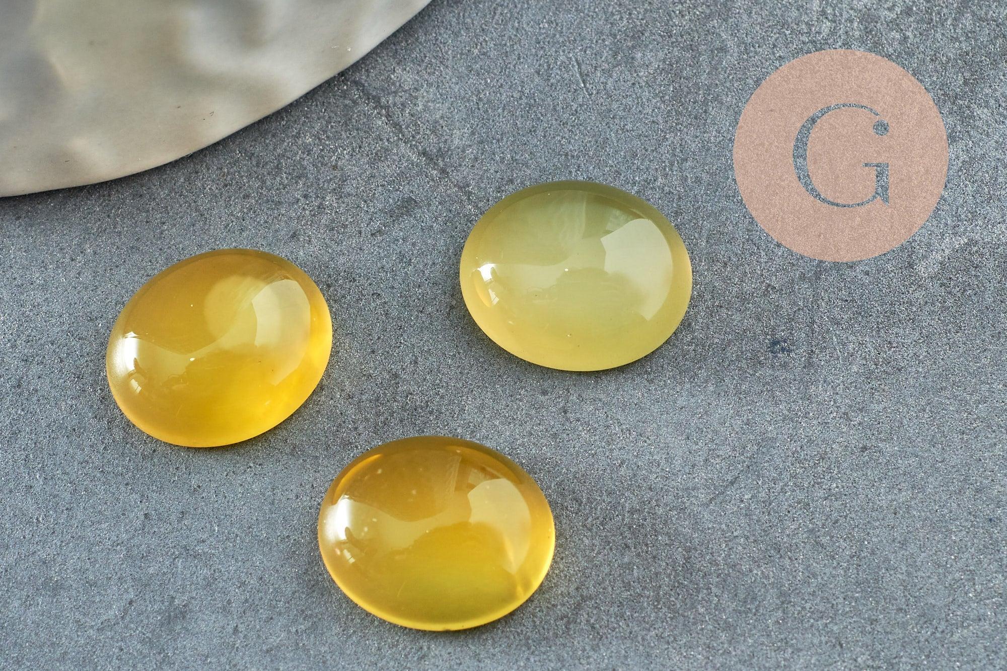 Cabochon ovale jade naturel teinté jaune 12x10mm, x1 (G9514)