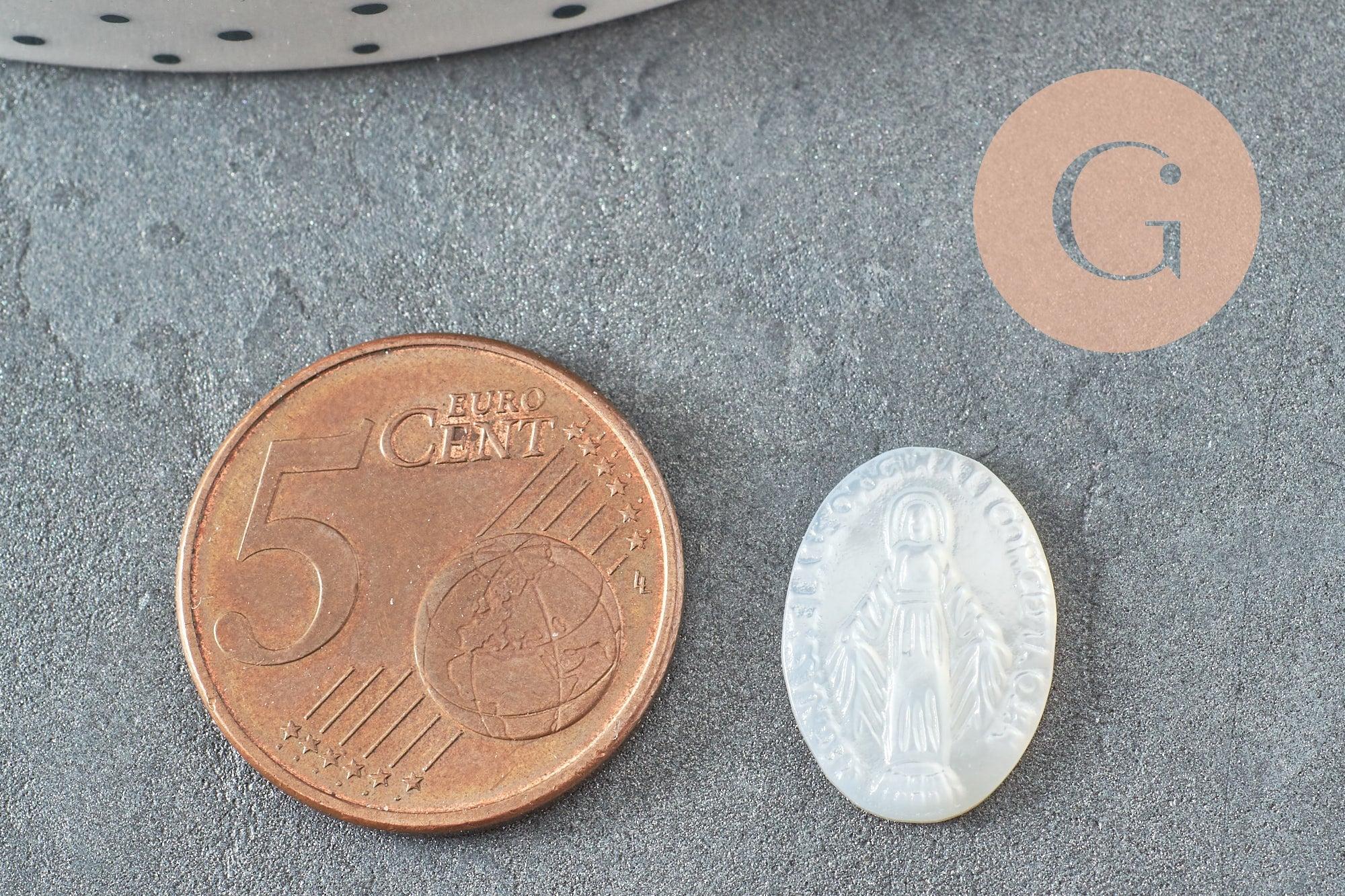 Cabochon ovale nacre blanche naturelle gravé Vierge Marie 16mm, x1 (G9624)