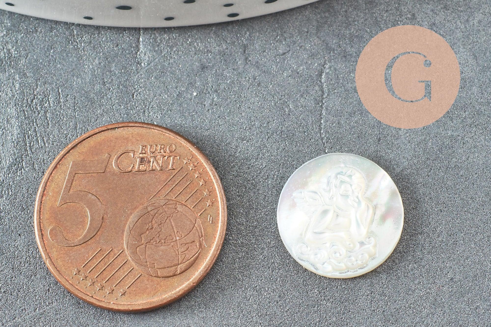 This 14mm natural shell cabochon is a true piece of craftsmanship, designed to bring a spiritual and delicate touch to your jewelry. With its hand-engraved religious motif, this cabochon adds a unique and refined dimension to your creations.