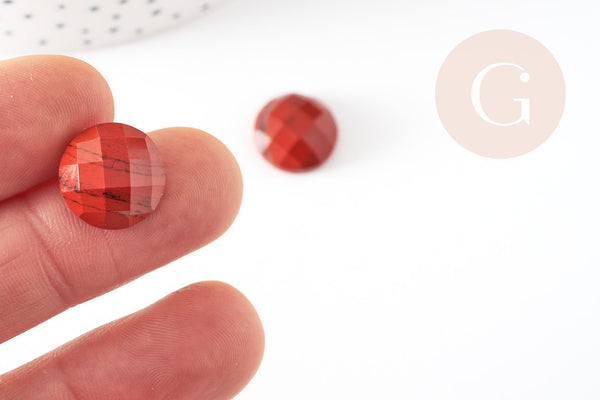 Round faceted red jasper cabochon, stone jewelry, round cabochon, natural jasper, red jasper, 14.5mm cabochon, natural stone