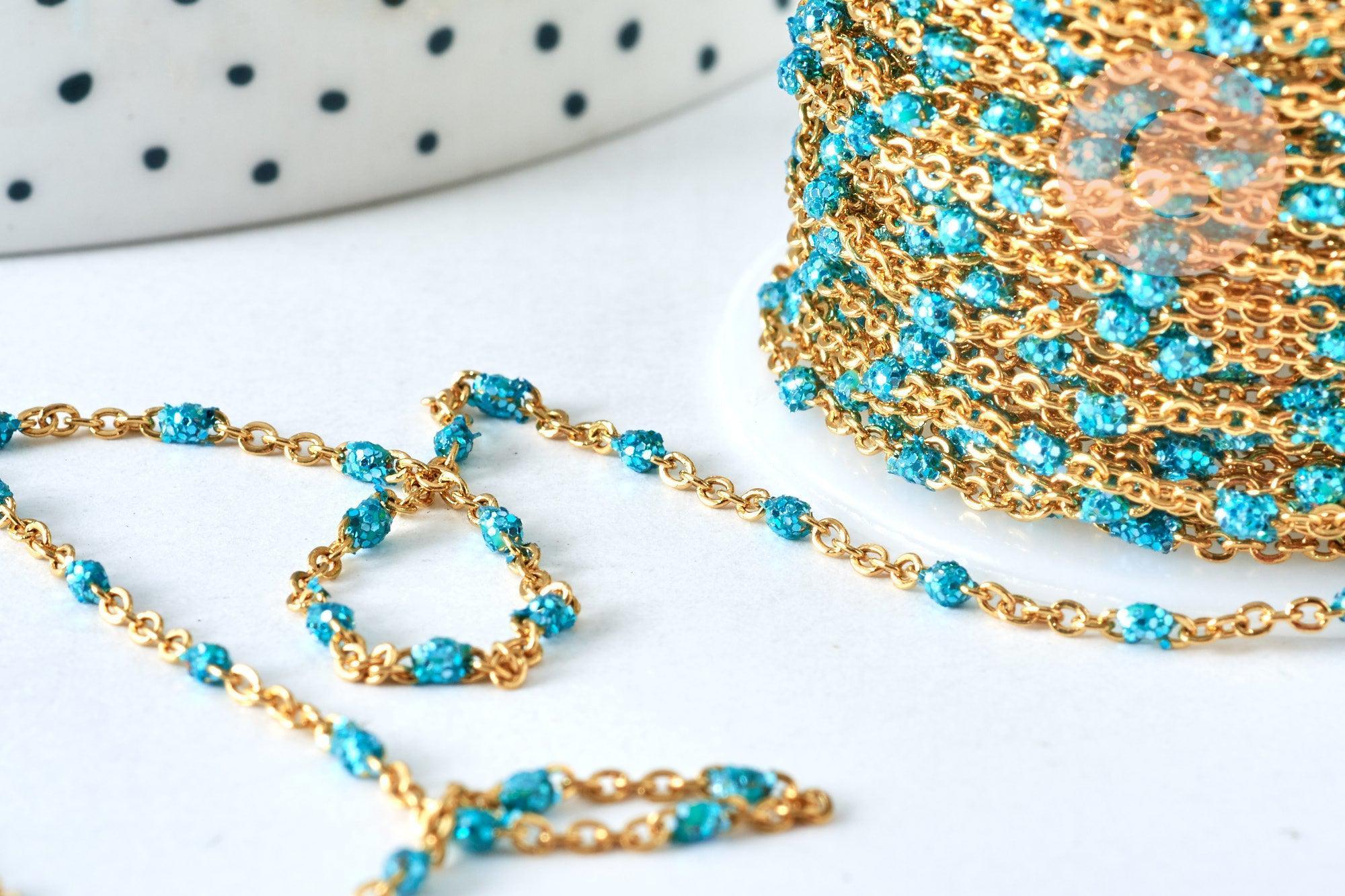 A fancy stainless steel chain decorated with blue glitter resin to create all your DIY jewelry desires