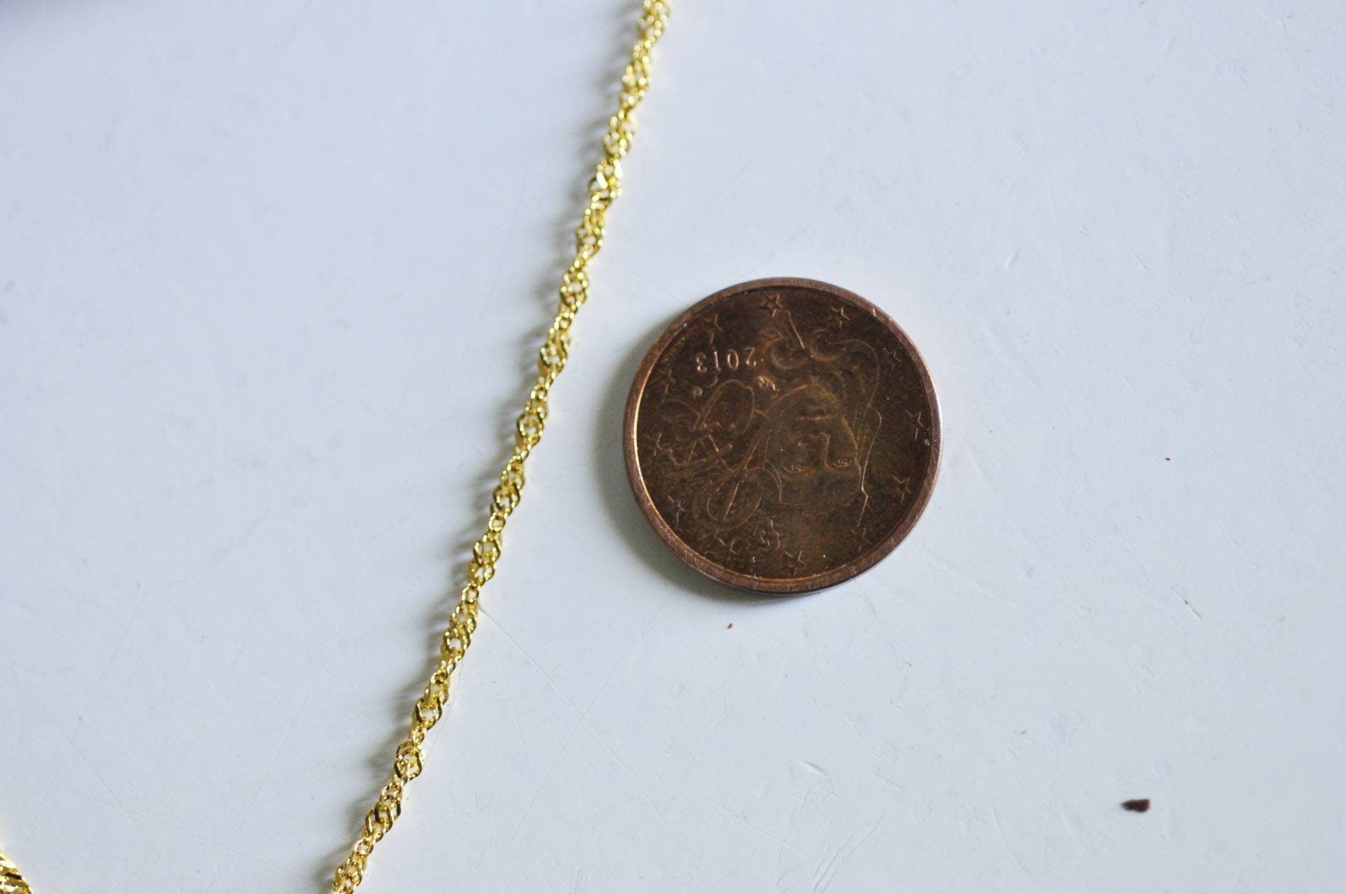 Its delicately twisted structure offers a subtle shine and a refined finish. With a width of 2 mm and a length of 1 meter , this chain is ideal for making personalized necklaces , bracelets or pendants.