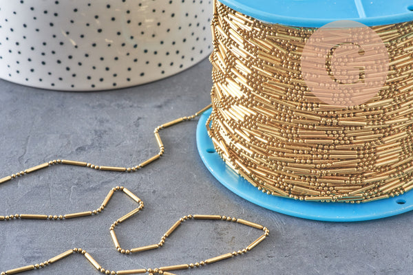 Raw brass bamboo ball chain, creative supply, jewelry chain, jewelry creation, ball chain, nickel-free, wholesaler, 1.5mm, 5 meters,