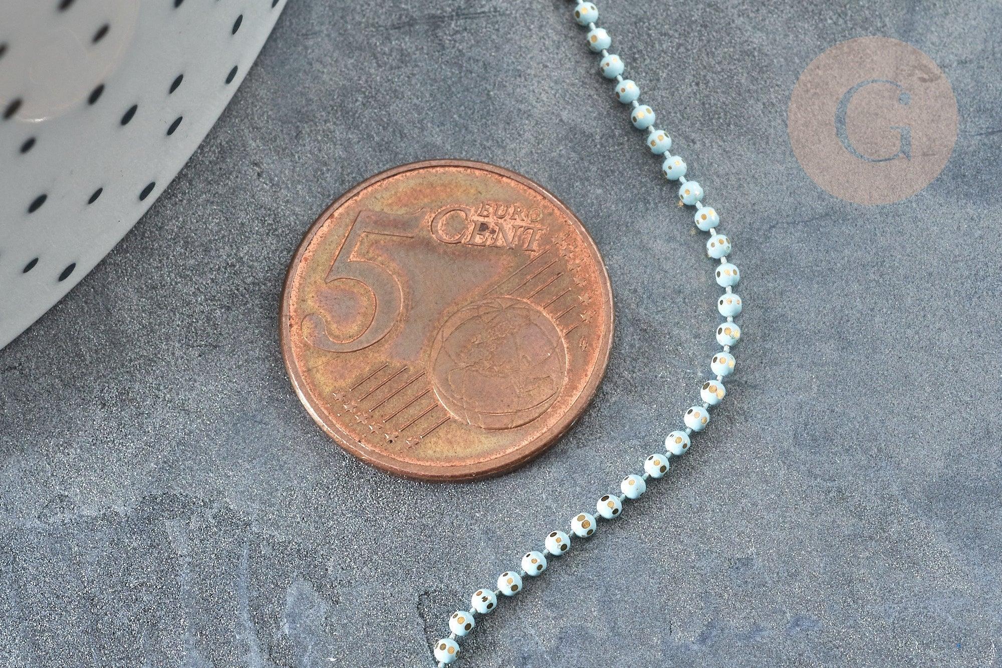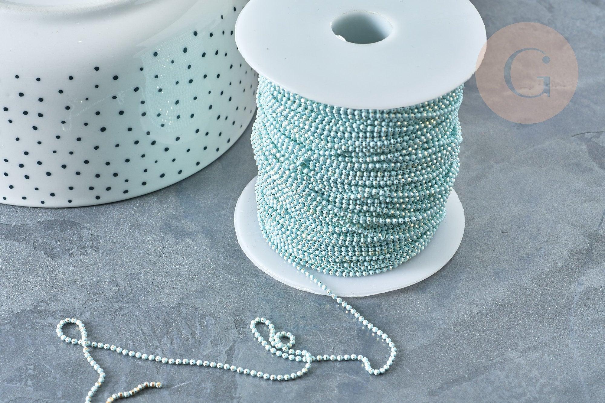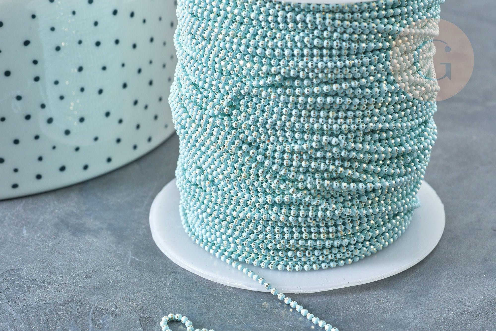 Thanks to this faceted ball chain in turquoise-colored brass , you will be able to make your own necklaces, costume bracelets, necklaces, DIY costume earrings and other jewelry.