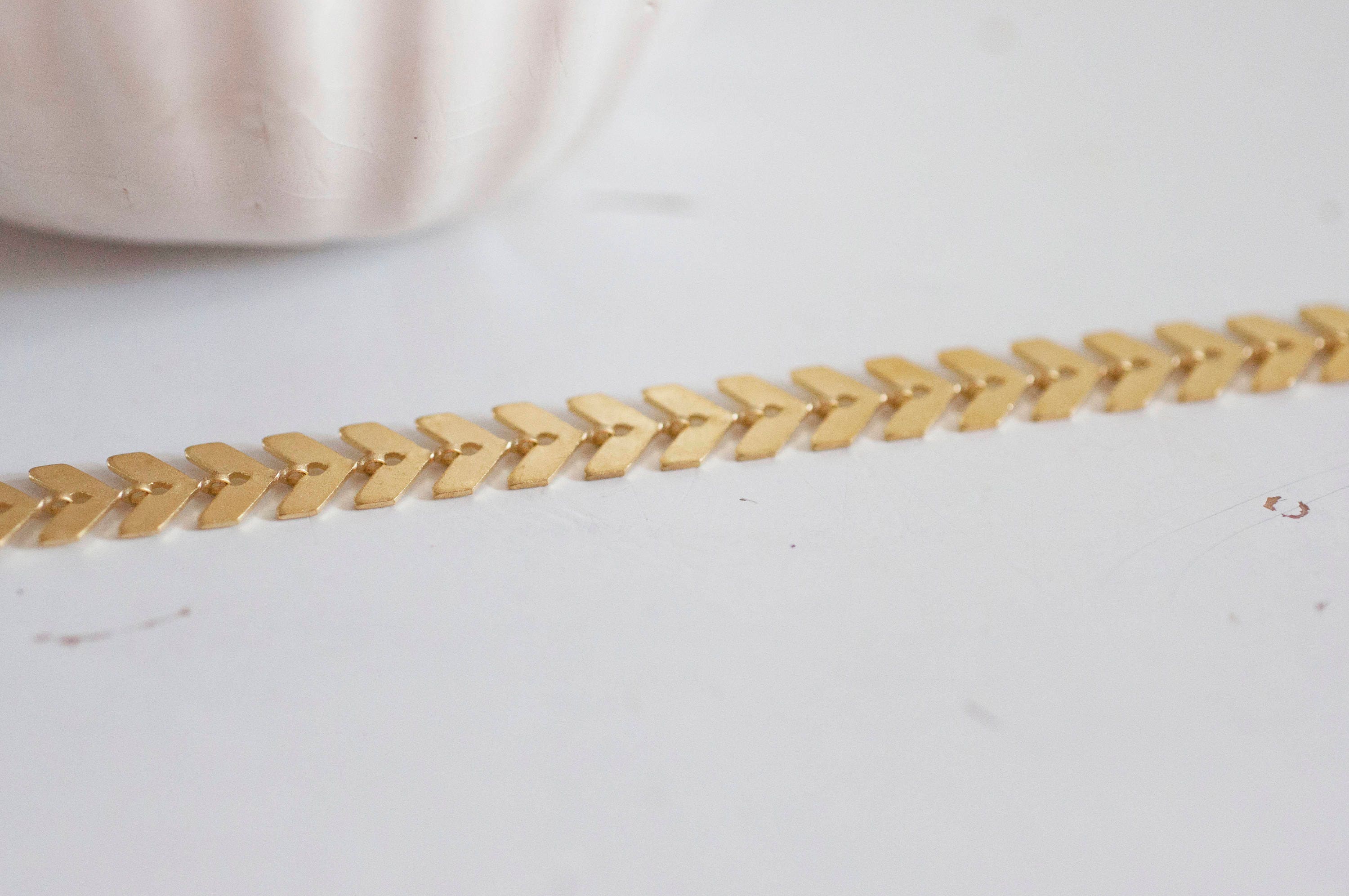 Matte golden brass chevron chain, creative supply, jewelry chain, jewelry creation, fancy chain, nickel-free, wholesaler, 7.5mm, 100 cm A fishbone chain, in matt gold-plated brass herringbone mesh. An absolutely magnificent matte chain and really perfect for making a bracelet, a...
