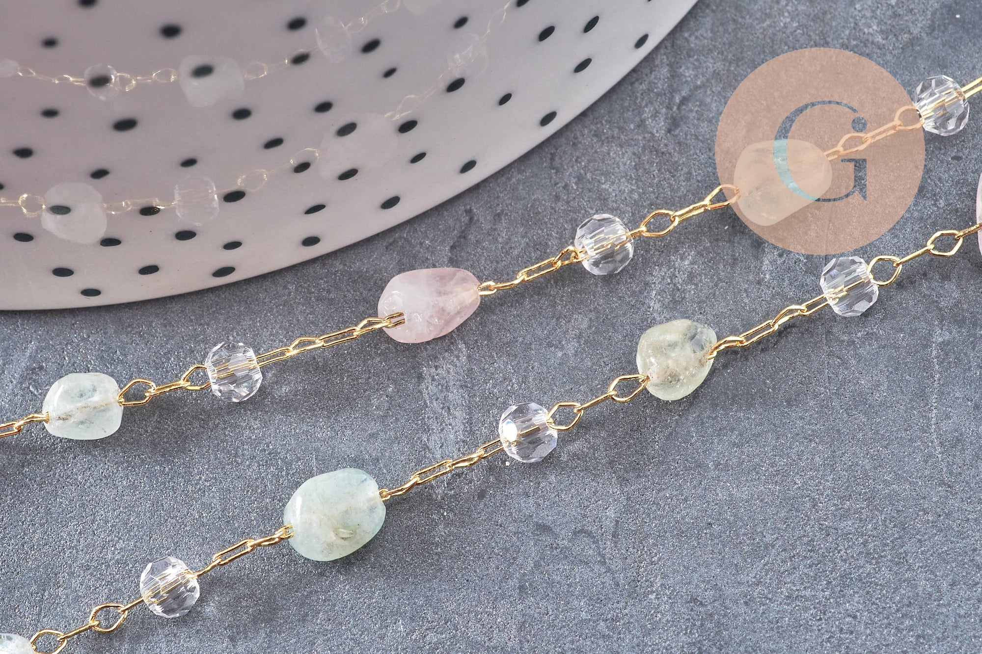 • Beads: natural stones + glass beads