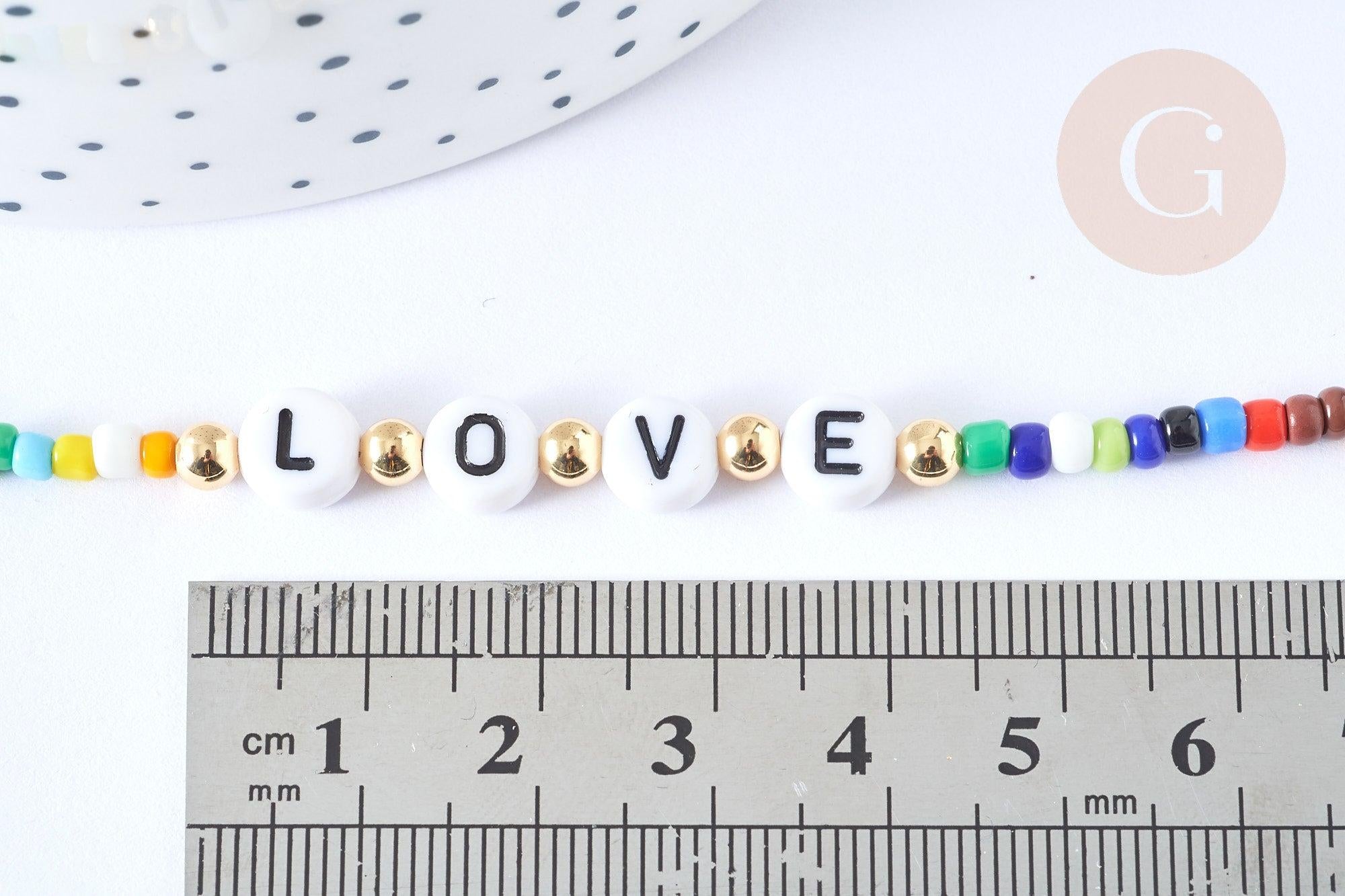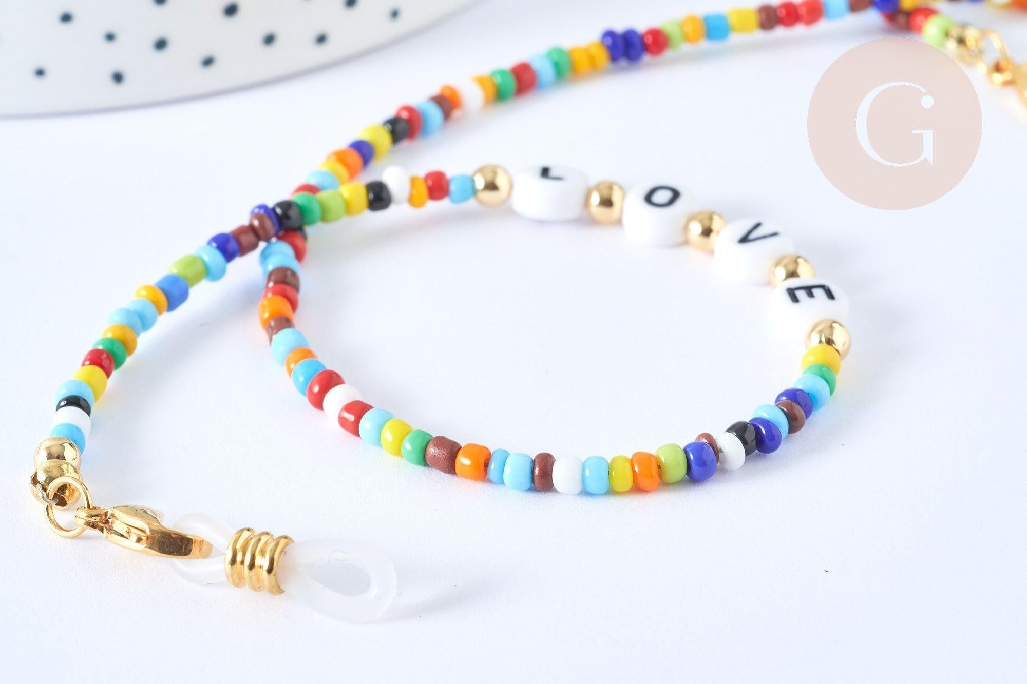 Adopt or offer this eyeglass chain , colored with acrylic "alphabet" beads . It is written " love " which means love in English!