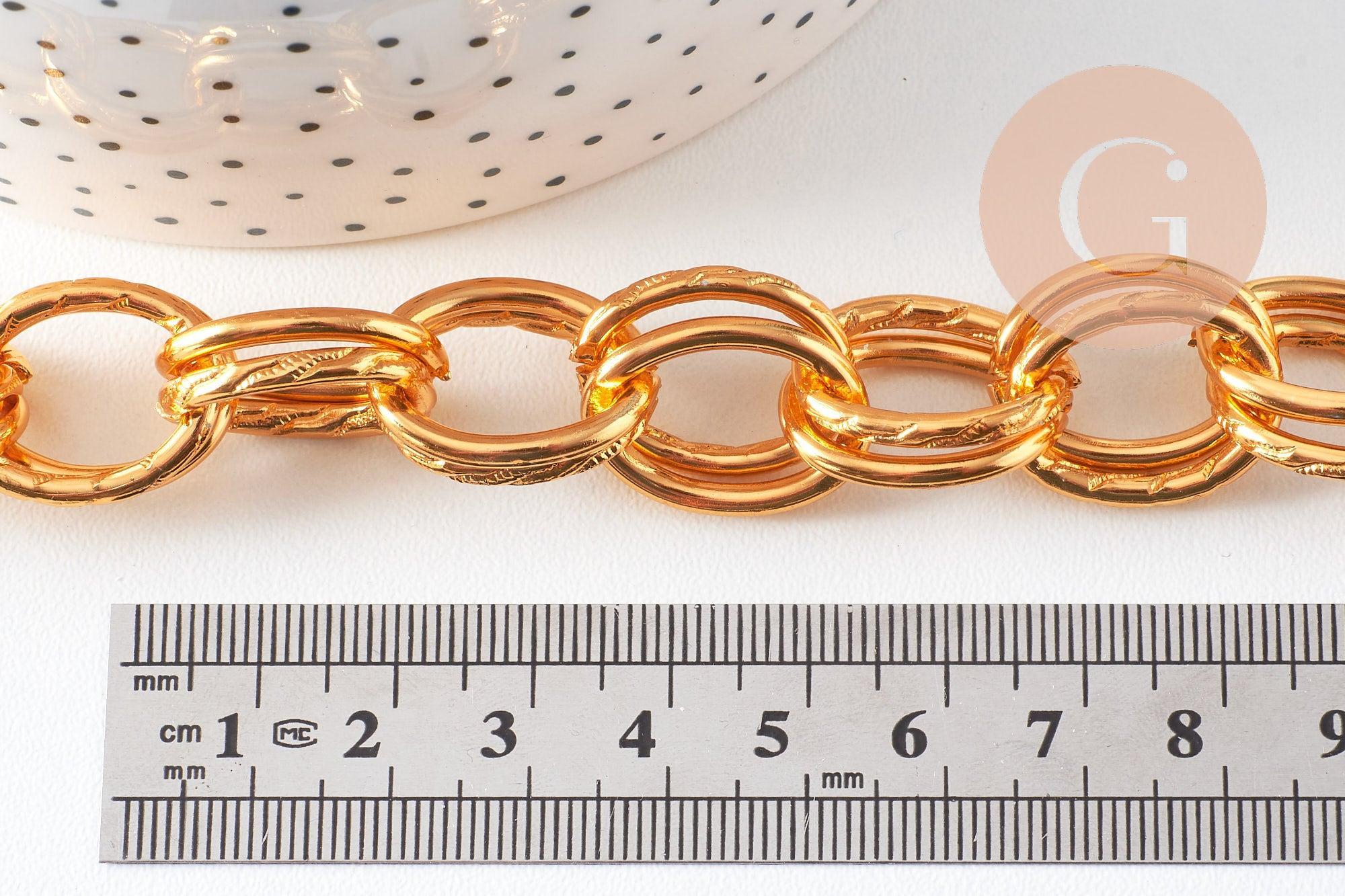 Chaine double maille rollo aluminium doré texturé 22mm, x1 mètre (G10591)