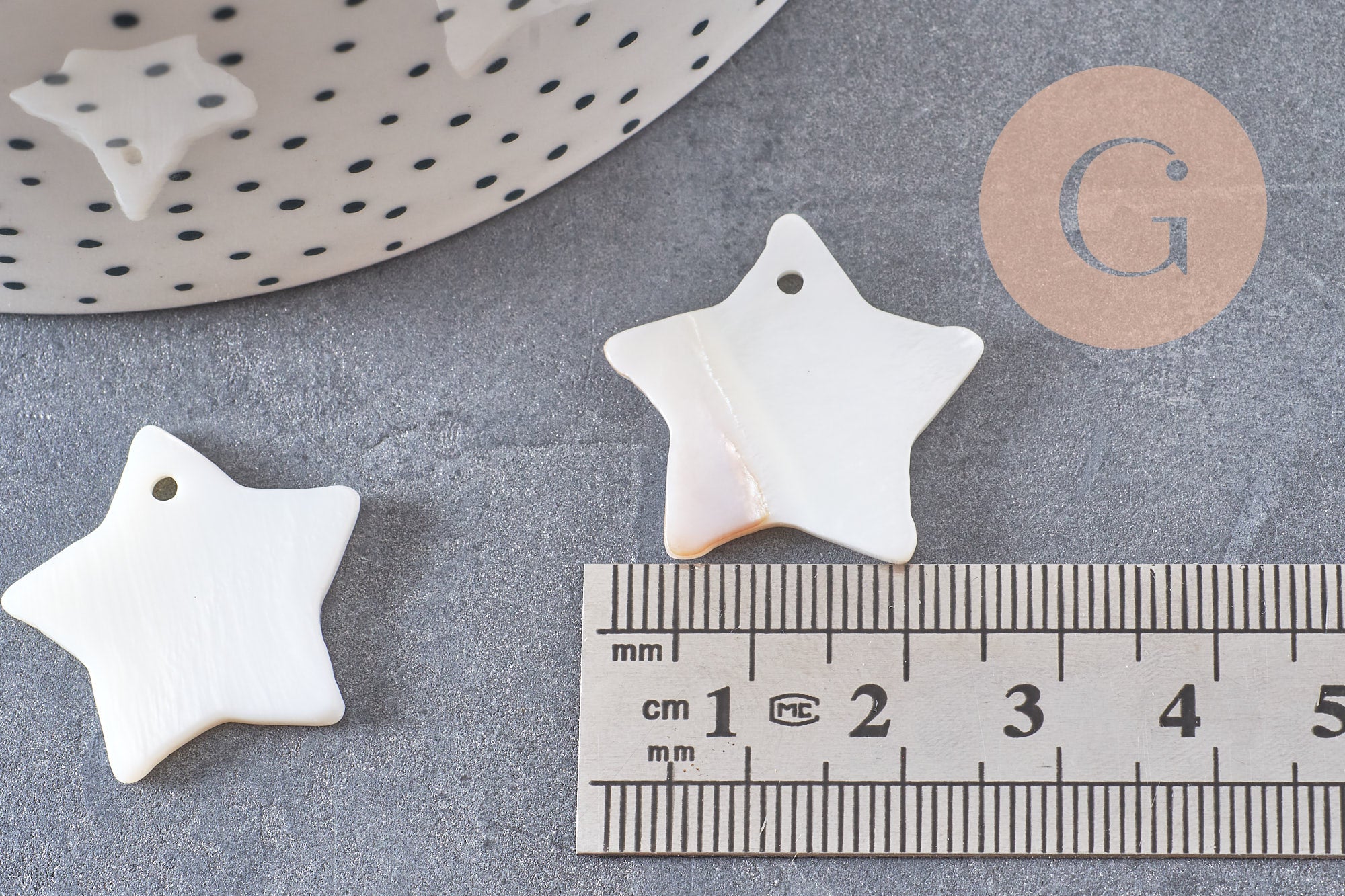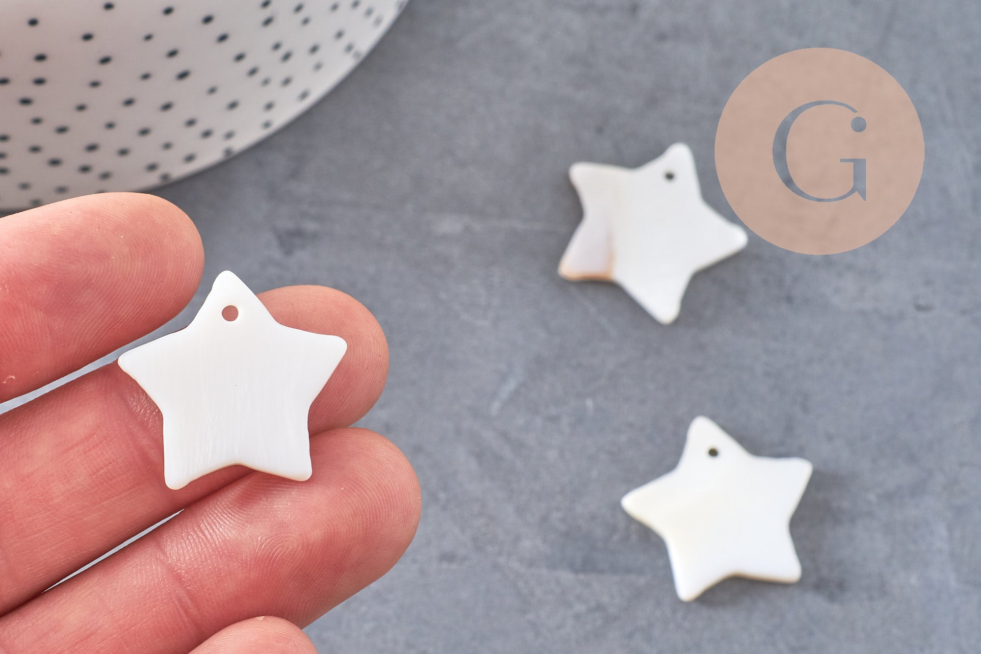 Natural white mother-of-pearl star charm, mother-of-pearl star, creative supply, star pendant, white shell, jewelry creation, 25mm, set of 5