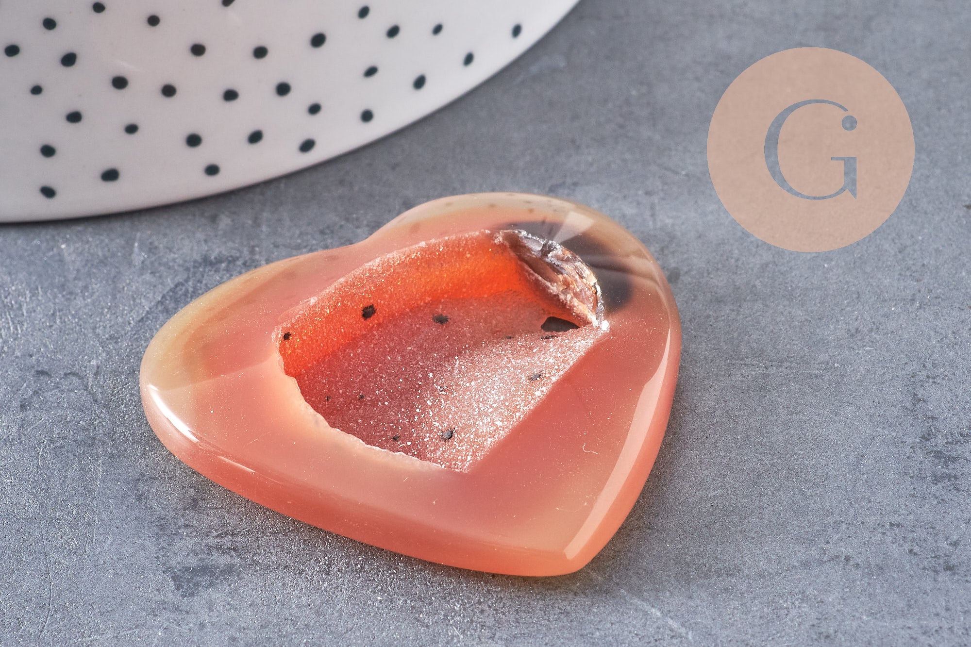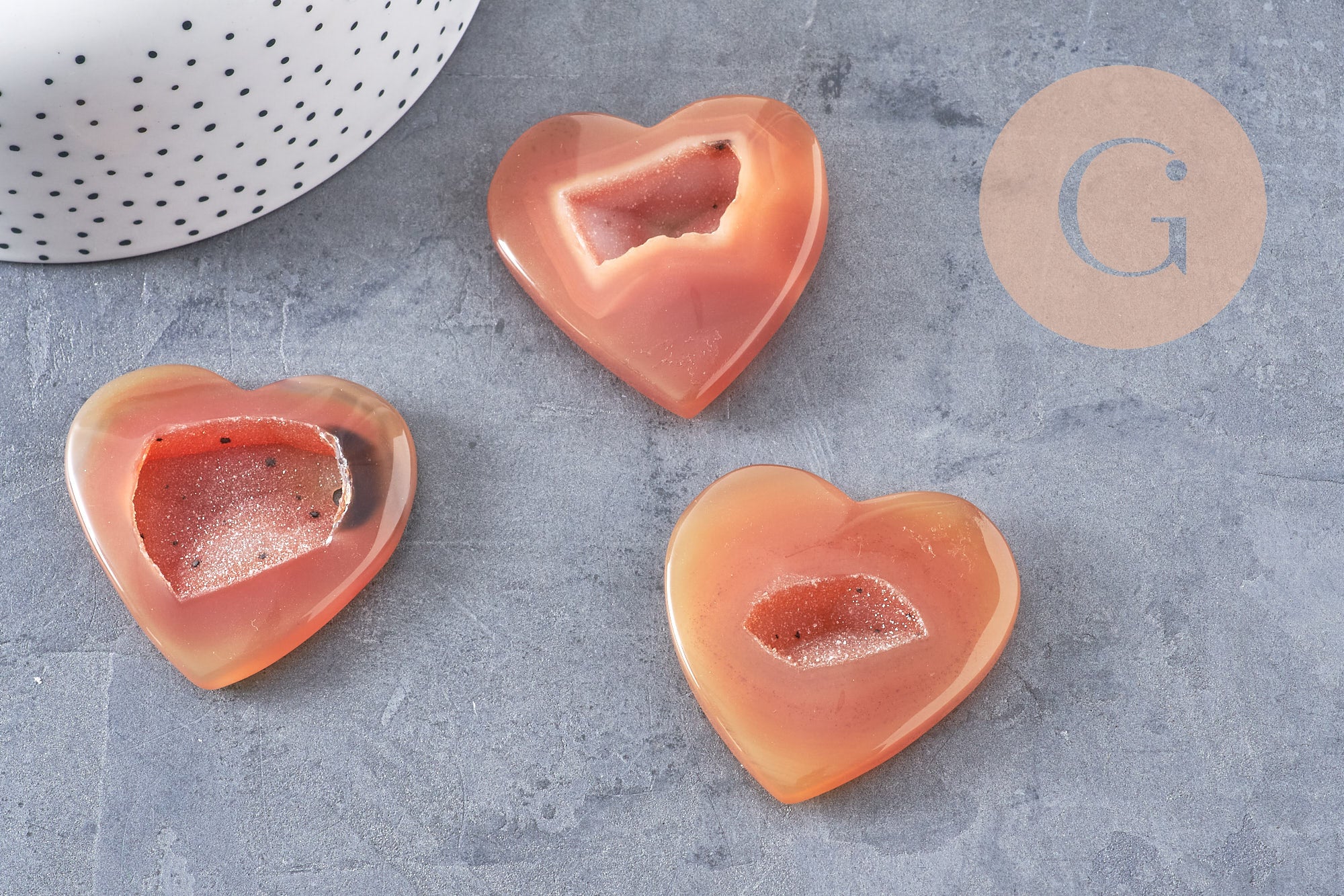 Fall for this natural agate heart, to carry close to you in a bag or as a decoration ready for you. The heart has a crystallized part (druse) in the center
