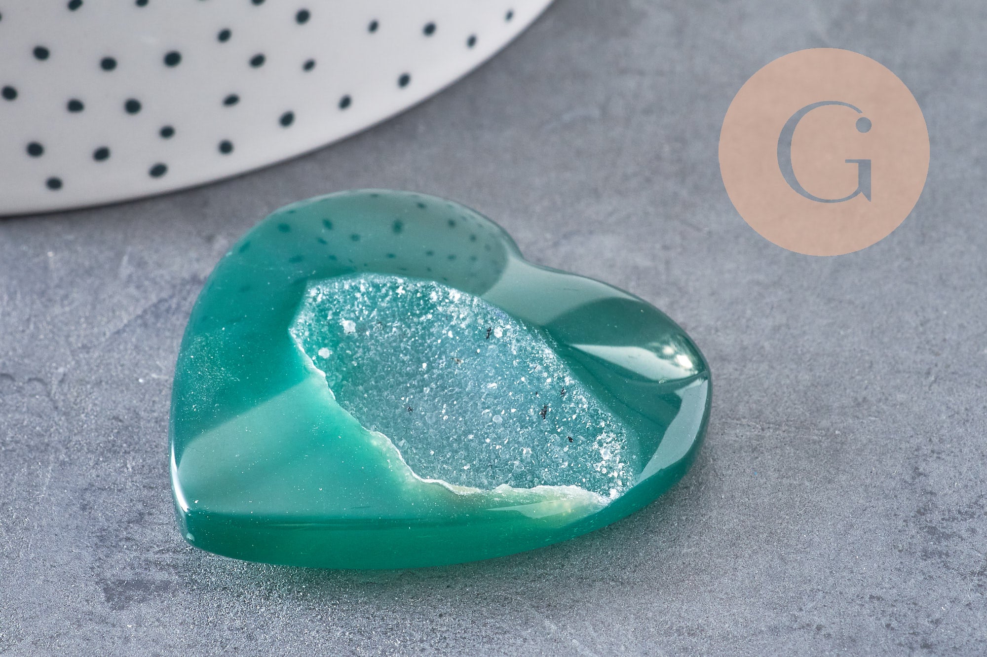 Fall for this natural agate heart , to carry against you in a pouch or as a decoration close to you. The heart has a crystallized part (druse) in the center.