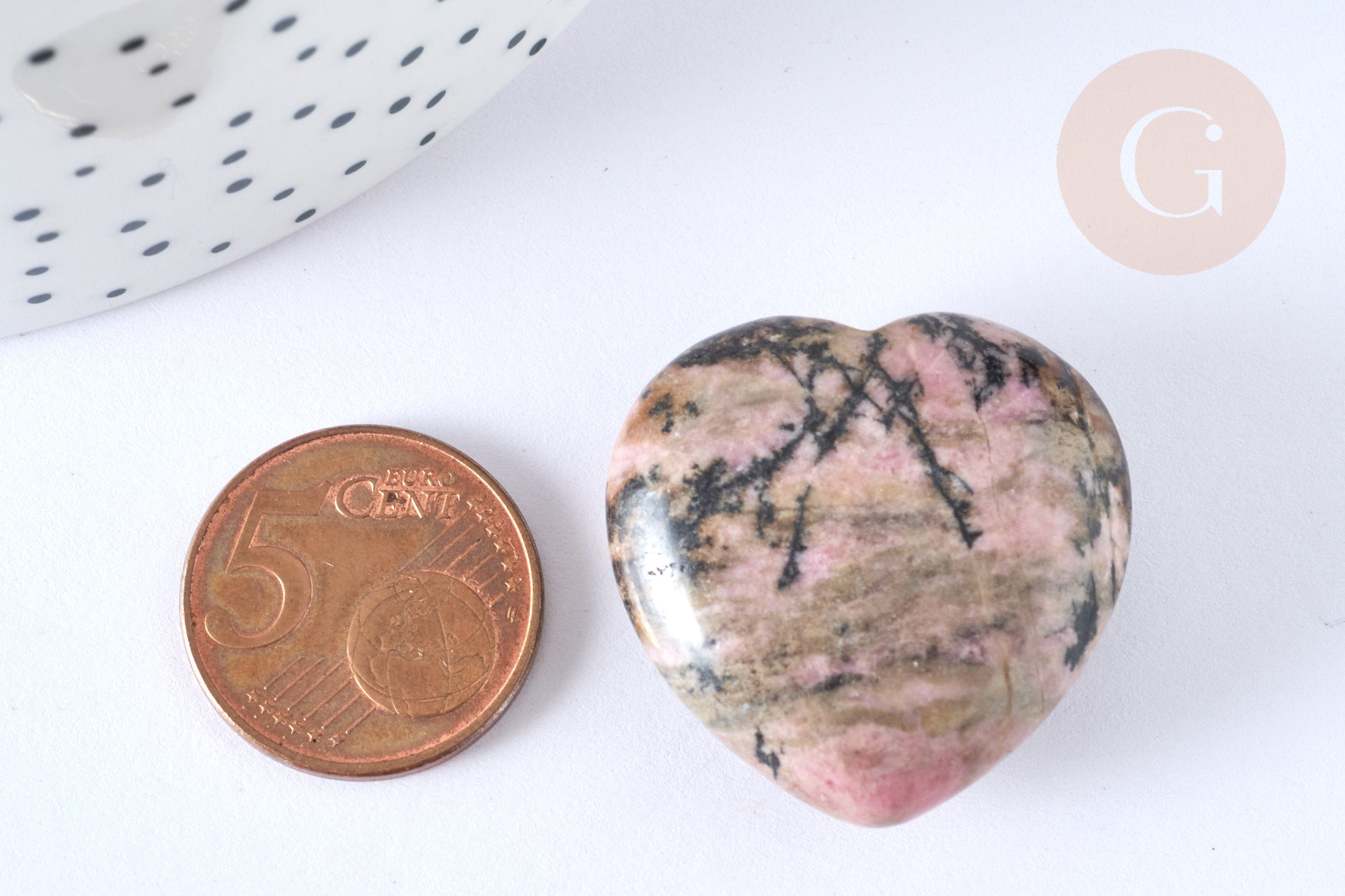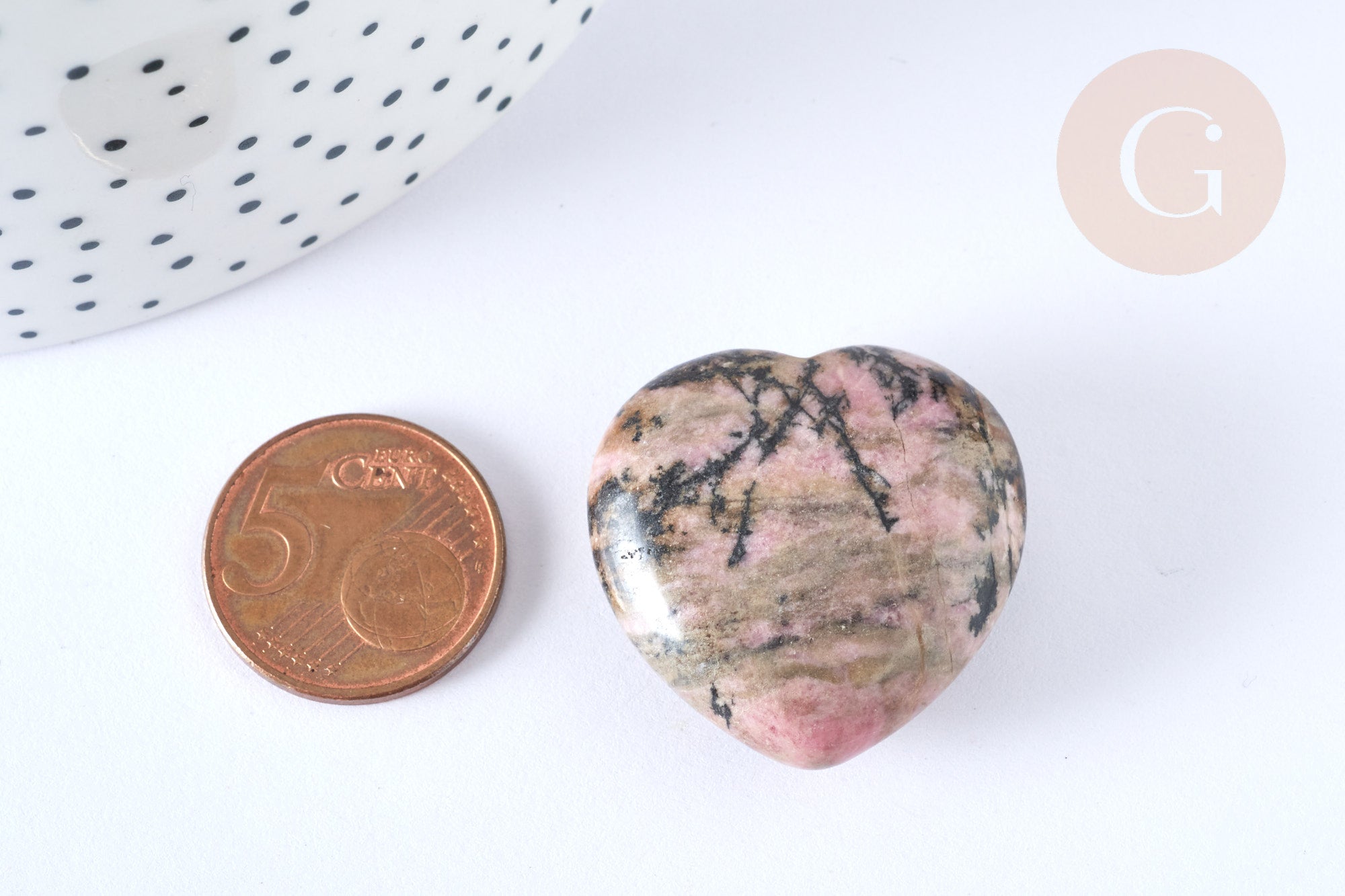 Fall for this little heart in natural Rhodonite to wear on a necklace or a necklace in the form of a rosary!