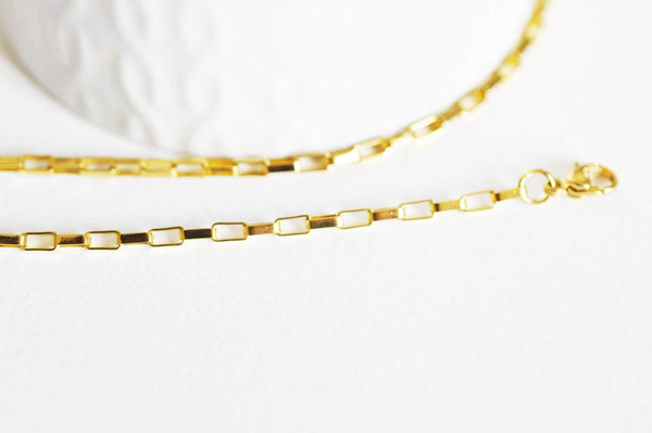 To quickly make your jewelry, Gingerily offers you this golden rectangular Venetian chain in gold-plated steel of very good quality.