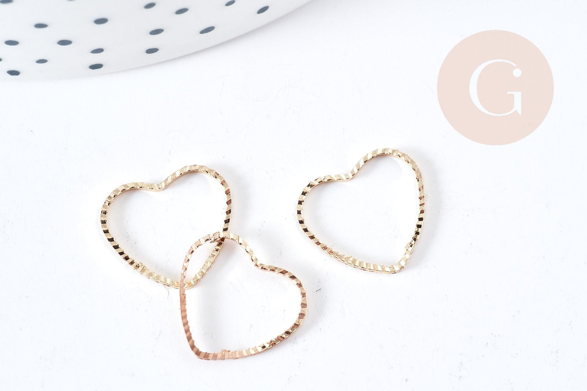 An 18K gold heart connector to adopt to make many DIY costume jewelry. This one is hammered to give it a little touch of fantasy .