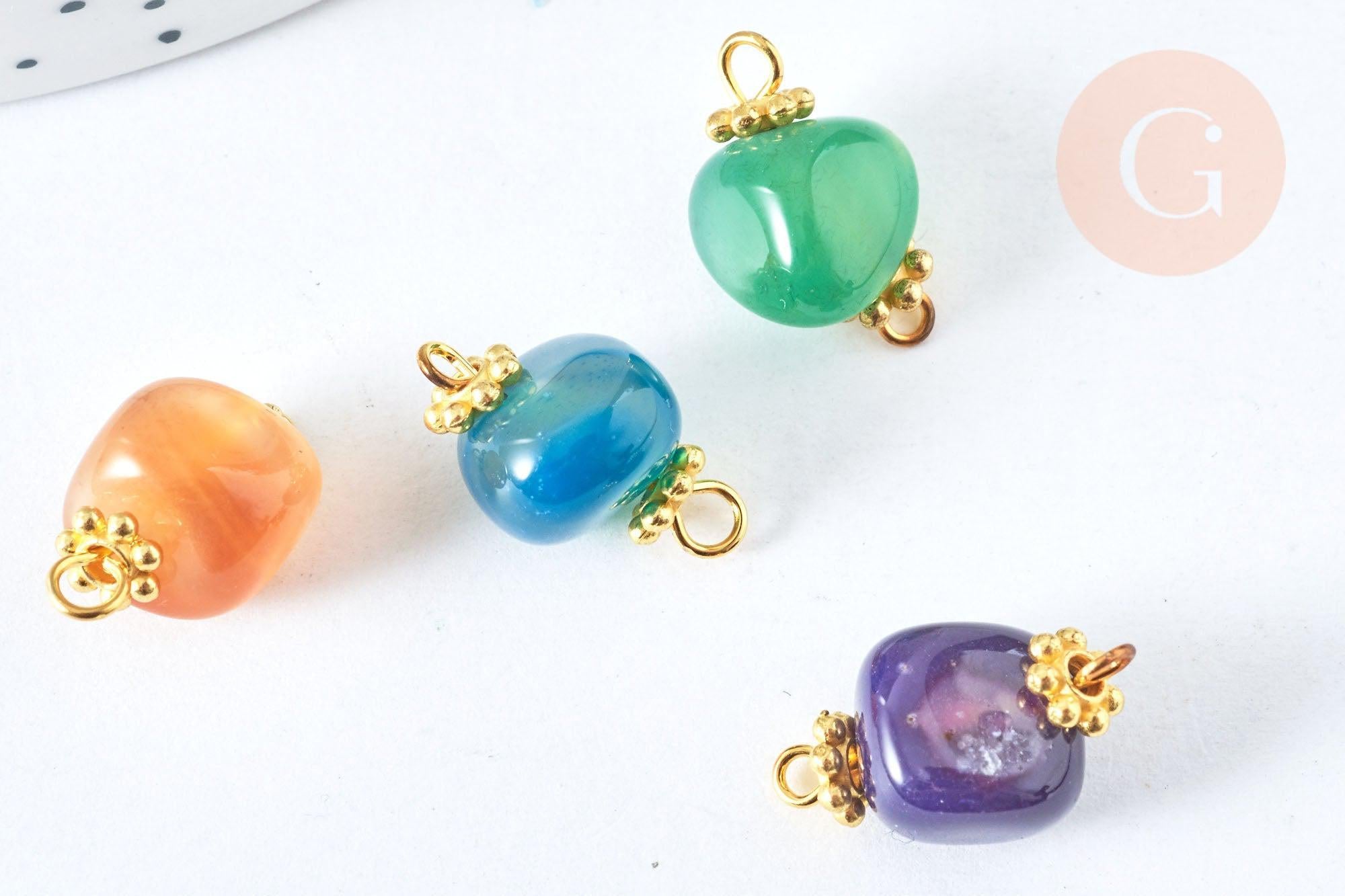 - Mount them one after the other, either loop on loop or with rings, in a chain to create a chain of stones. You can use just one color or take all 4 colors. Adjust your jewelry to make a necklace, a long necklace or a choker.