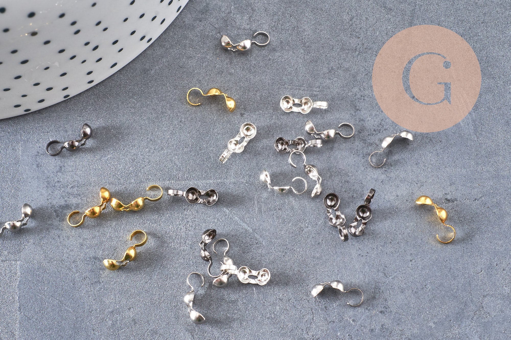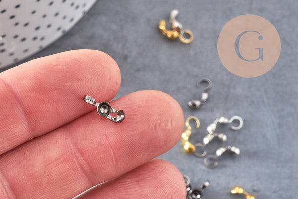 silver-plated bronze connectors, creative supplies, knot covers, ball chain, jewelry making, silver findings, set of 5Gr