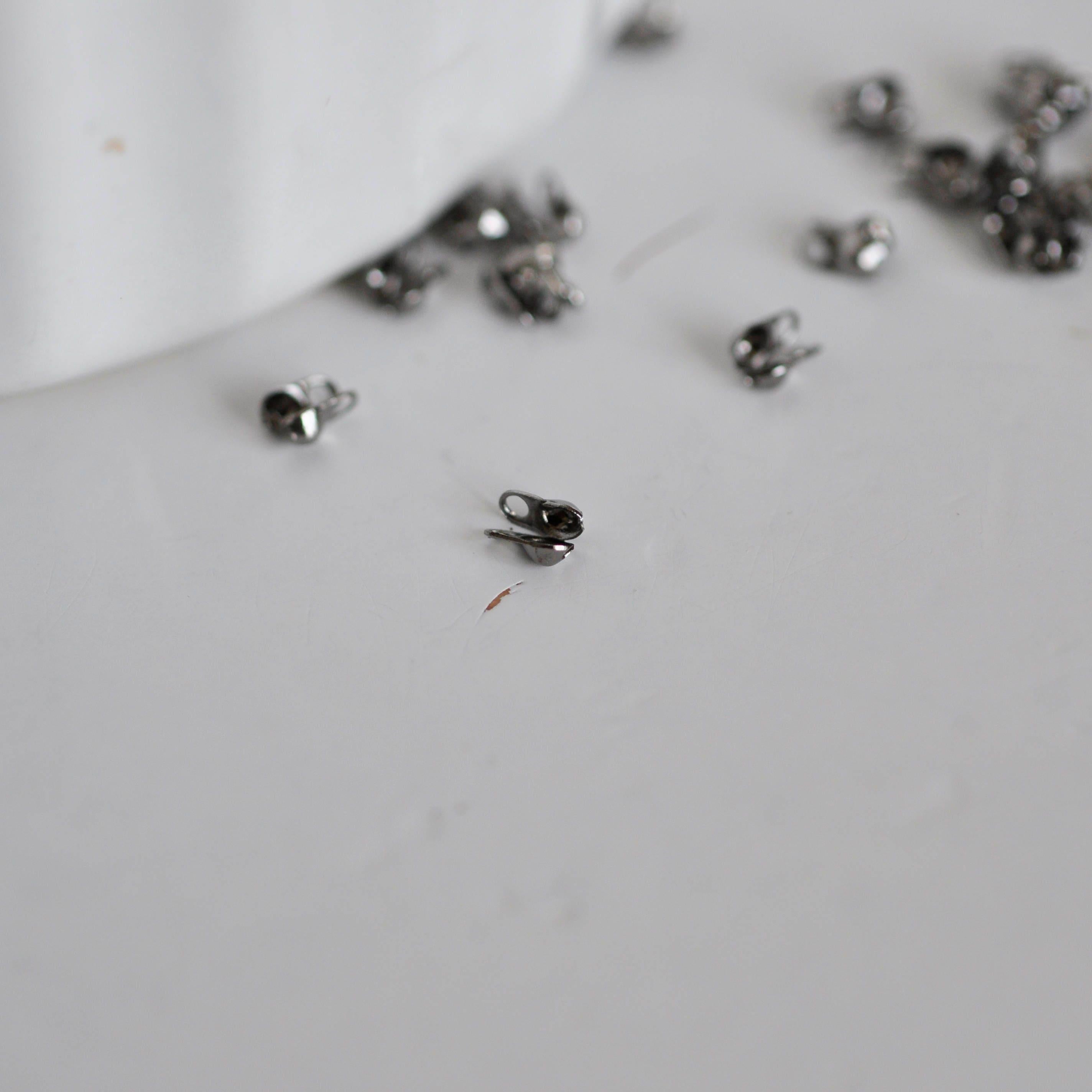These small gunmetal knot covers are specially designed to neatly connect and finish your ball chains (up to 1.5 mm in diameter) or hide a knot. Practical and discreet, they offer a neat finish to all your DIY creations.